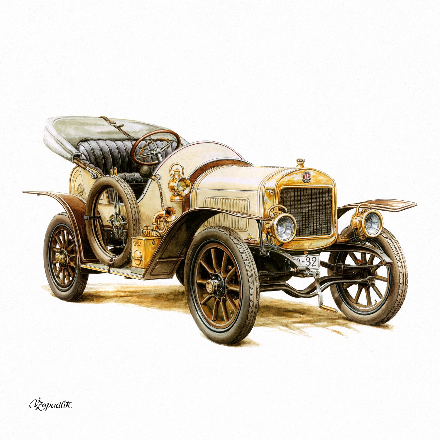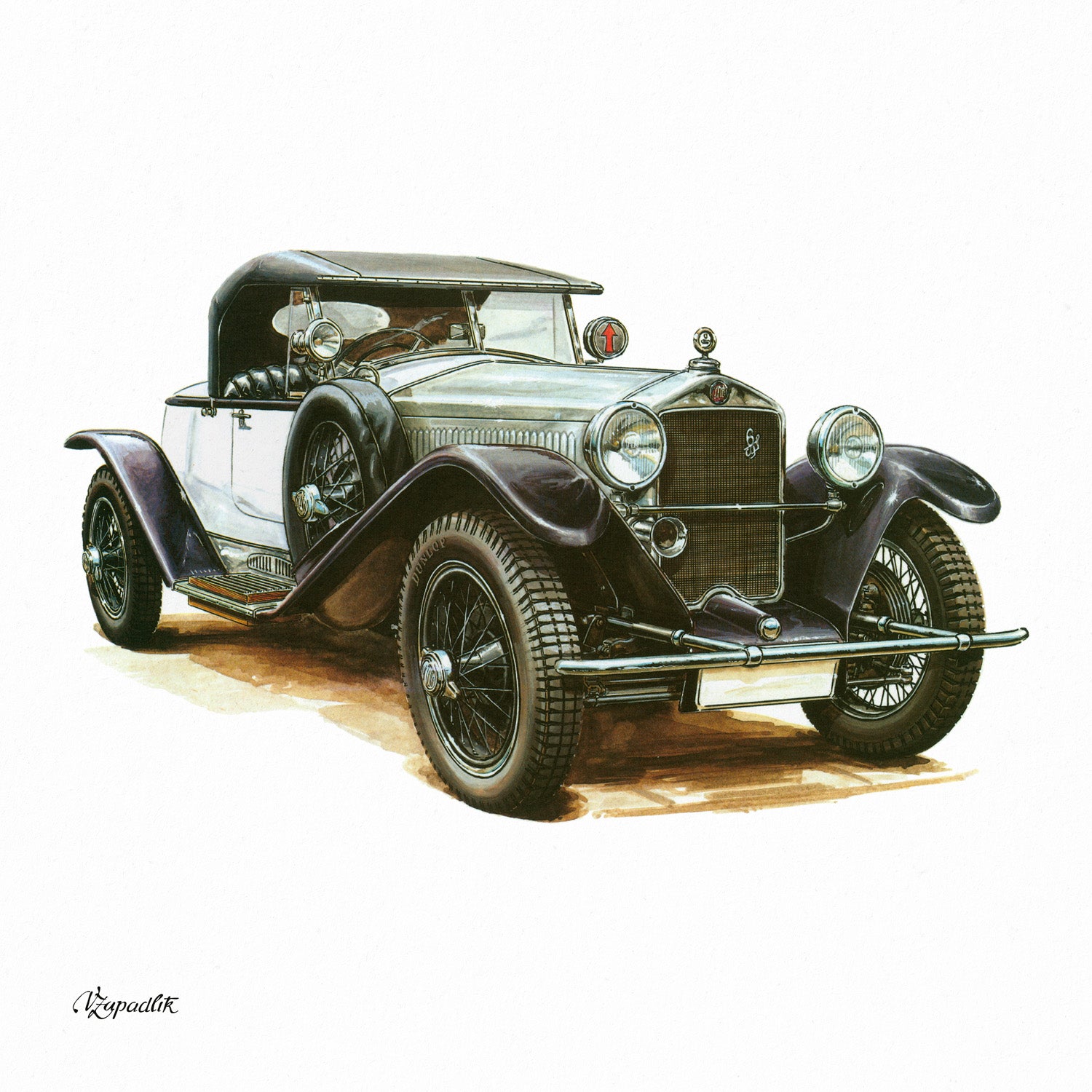 Broschürenkalender mit Zeichnungen historischer Automobile des weltbekannten Illustrators Václav Zapadlík.