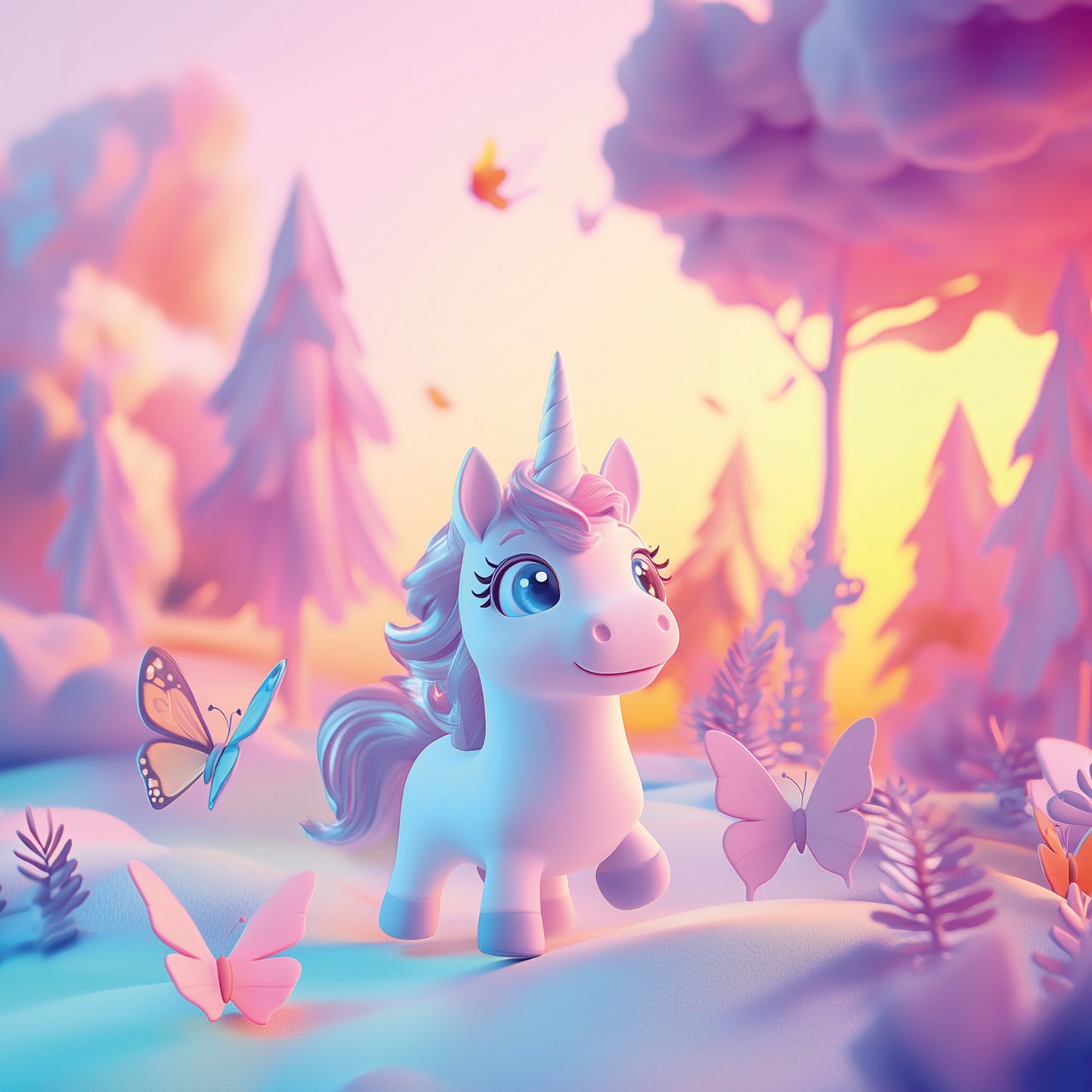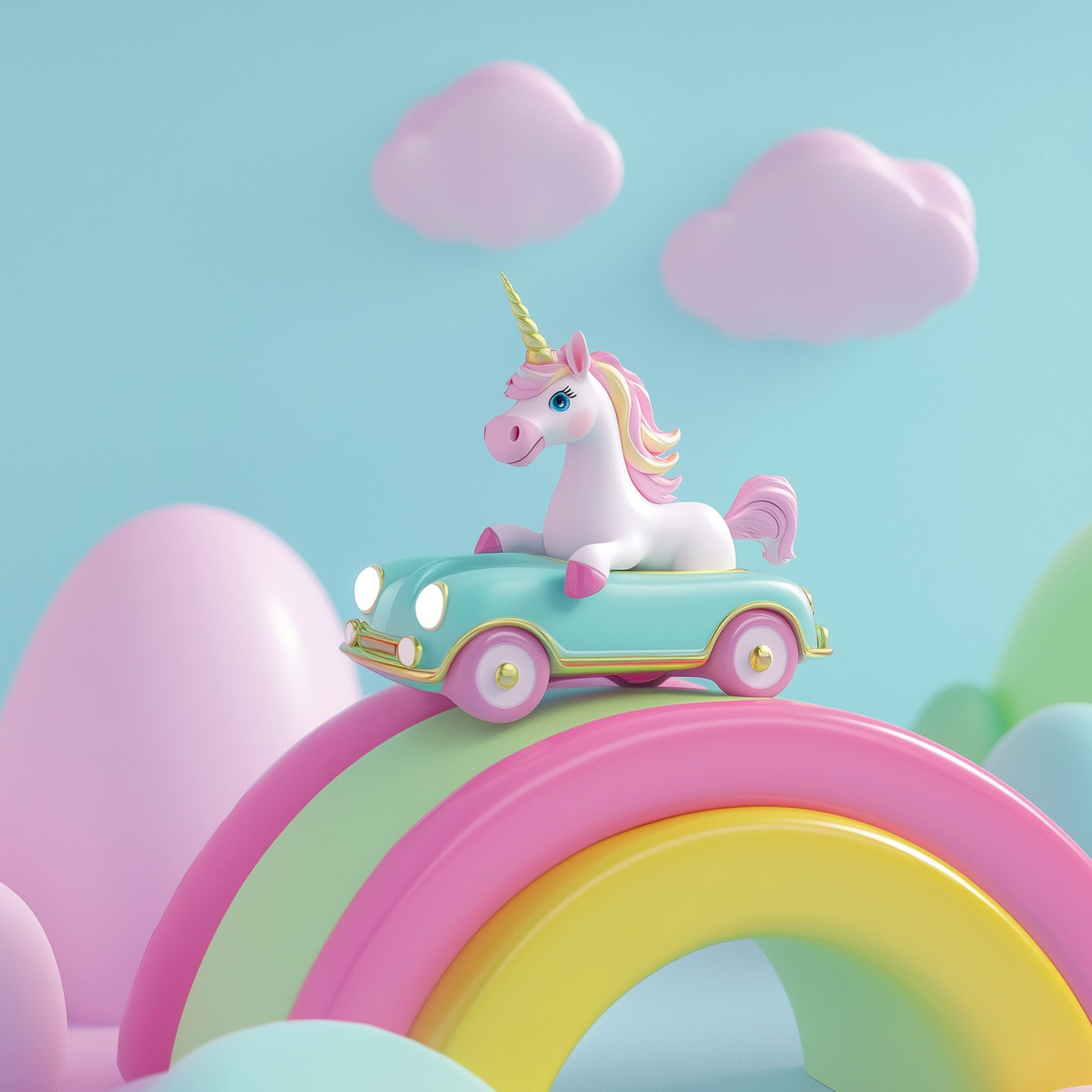 Broschürenkalender mit pastellfarbenen Illustrationen glücklicher Einhörner.