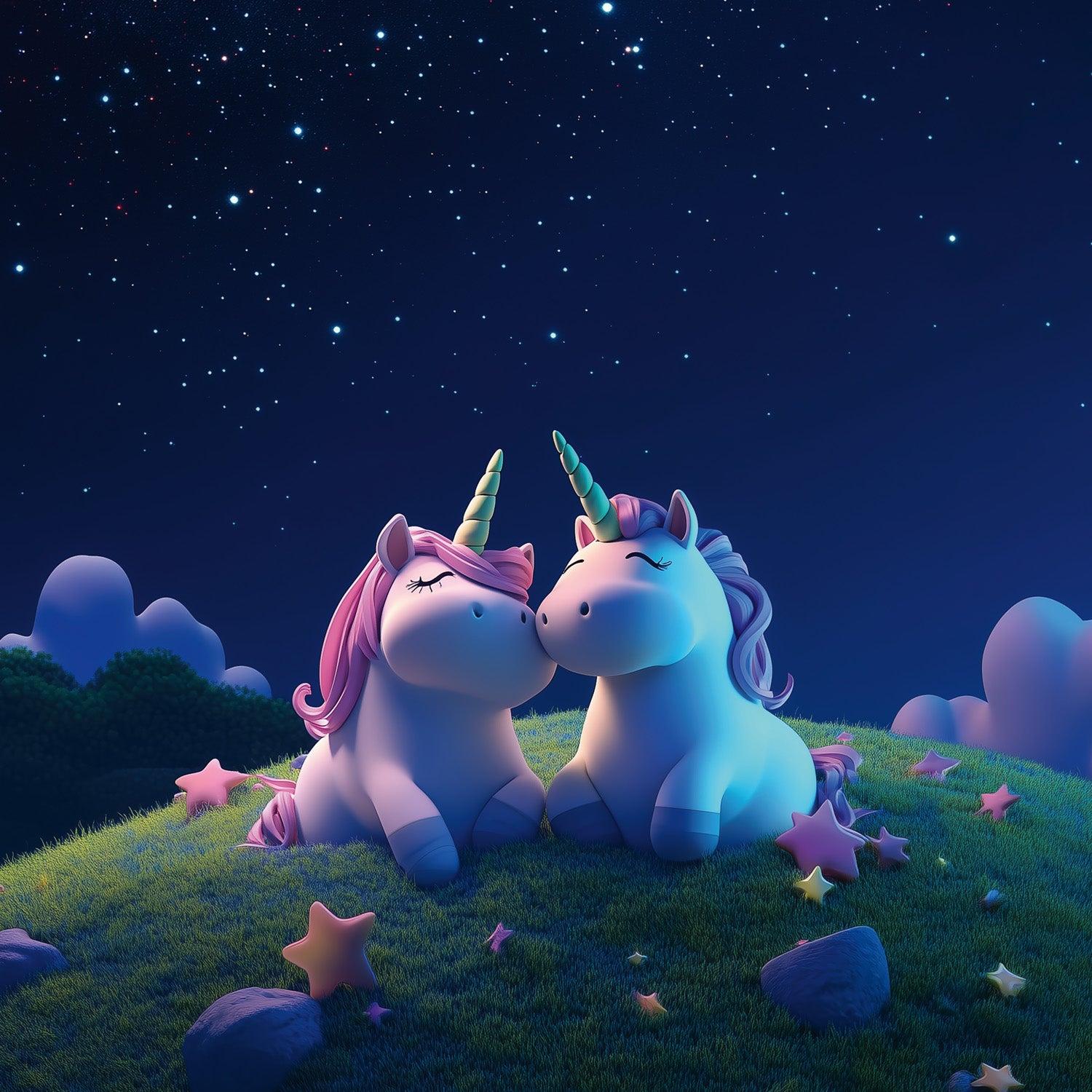 Notizkalender in Pastellfarben mit dem Motiv glücklicher Einhörner, die das Leben in vollen Zügen genießen. Enthält ein übersichtliches Kalendarium von September 2024 bis Dezember 2025 in sechs Sprachen, Mondphasen, wichtige Feiertage und Platz für tägliche Notizen.