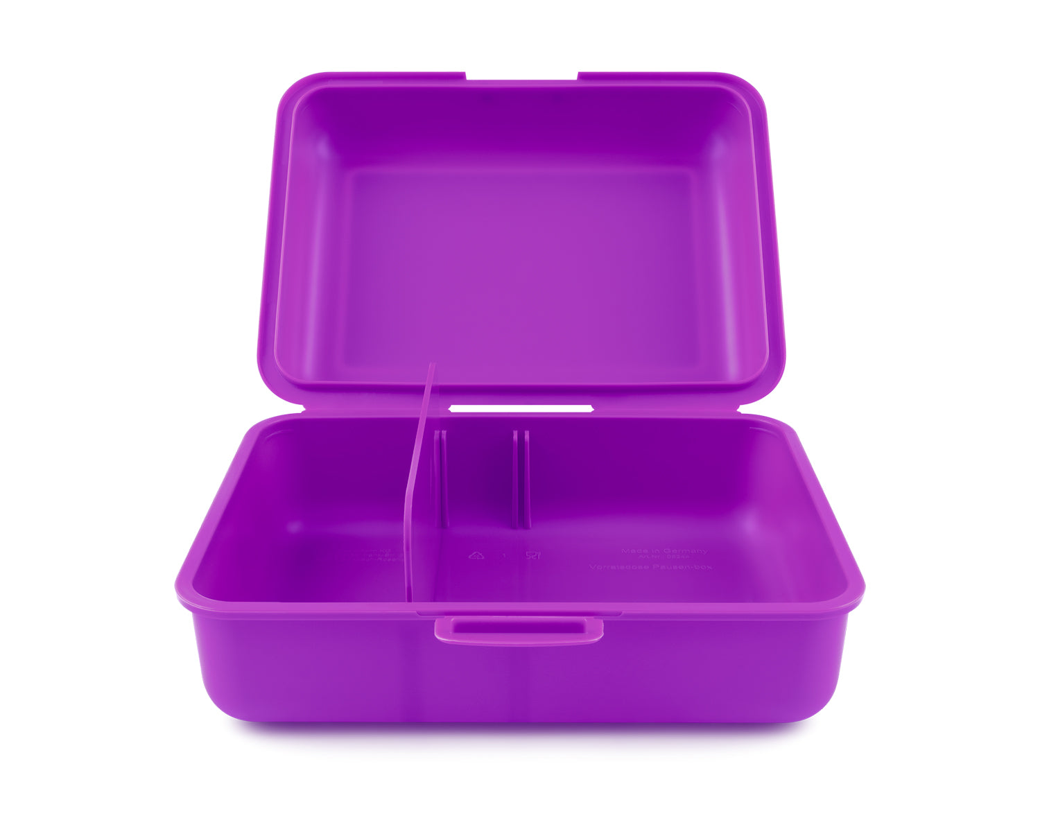 • Snackbox aus Kunststoff mit innerer Trennwand.