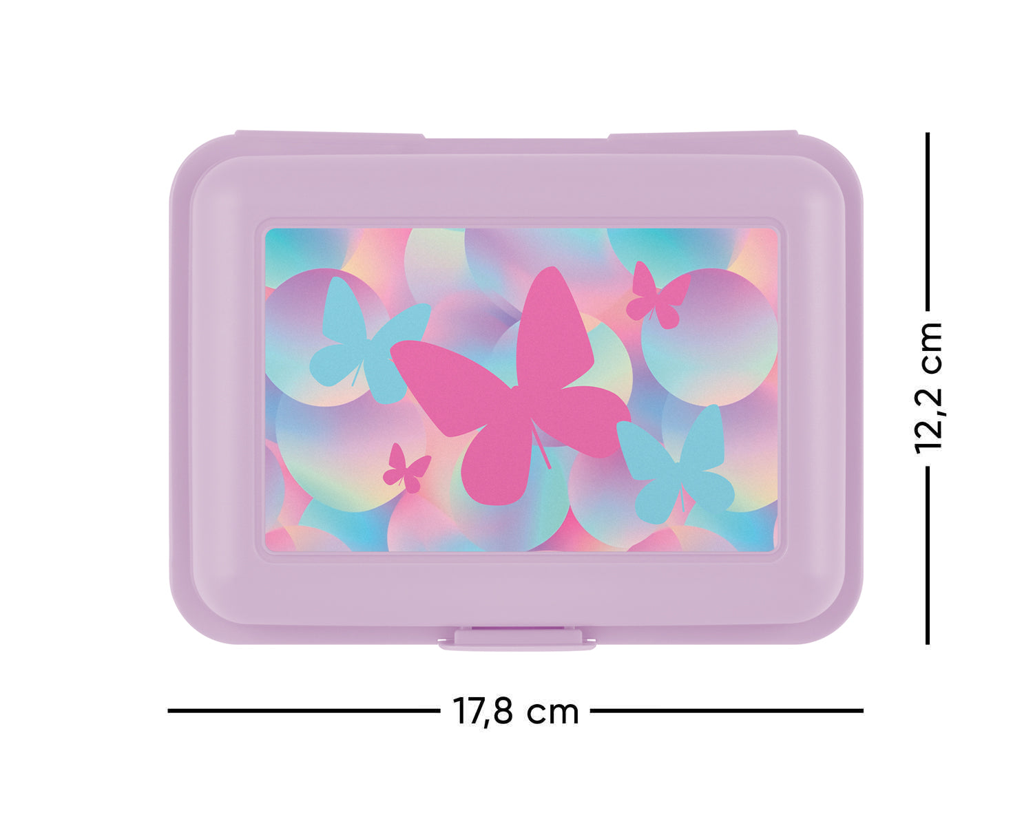 Snackbox mit Schmetterlingsmotiv und Trennsteg für die Zubereitung einer abwechslungsreichen und ausgewogenen Mahlzeit.