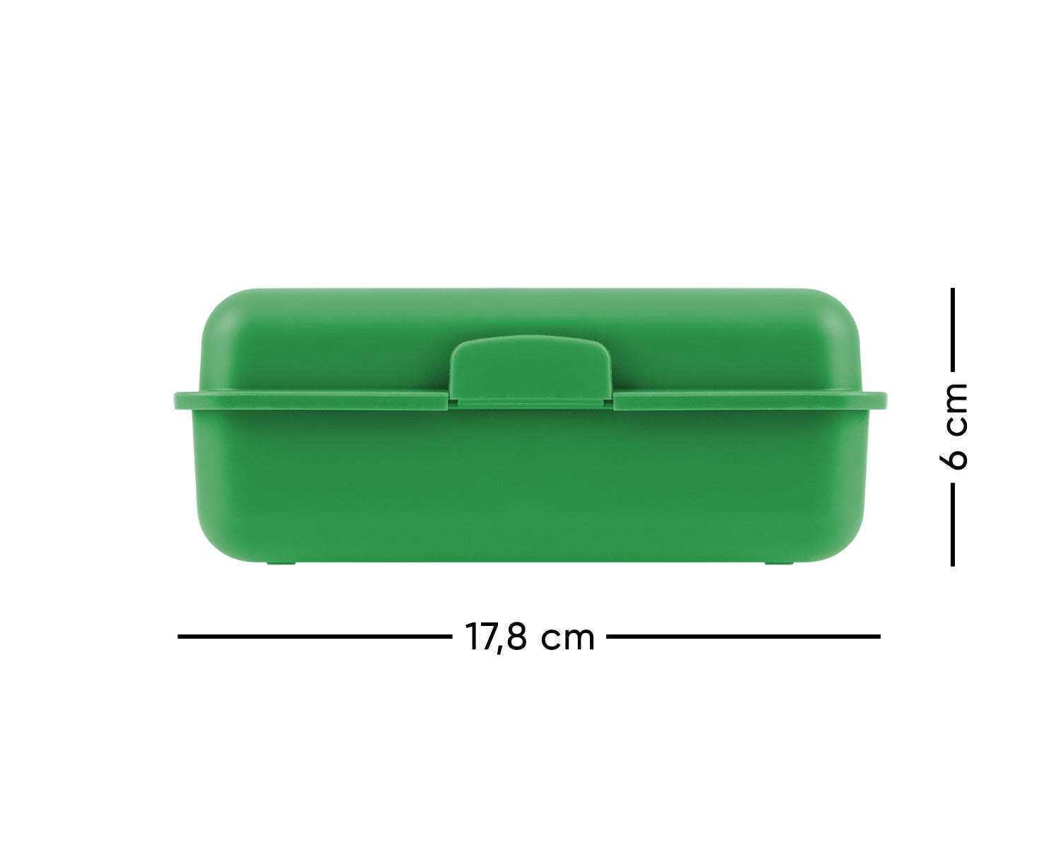 Grüne Lunchbox mit Trennfach zur Separierung von Lebensmitteln und niedlichem Drachenmotiv. Auch als Teil eines preisgünstigen Schulsets erhältlich.