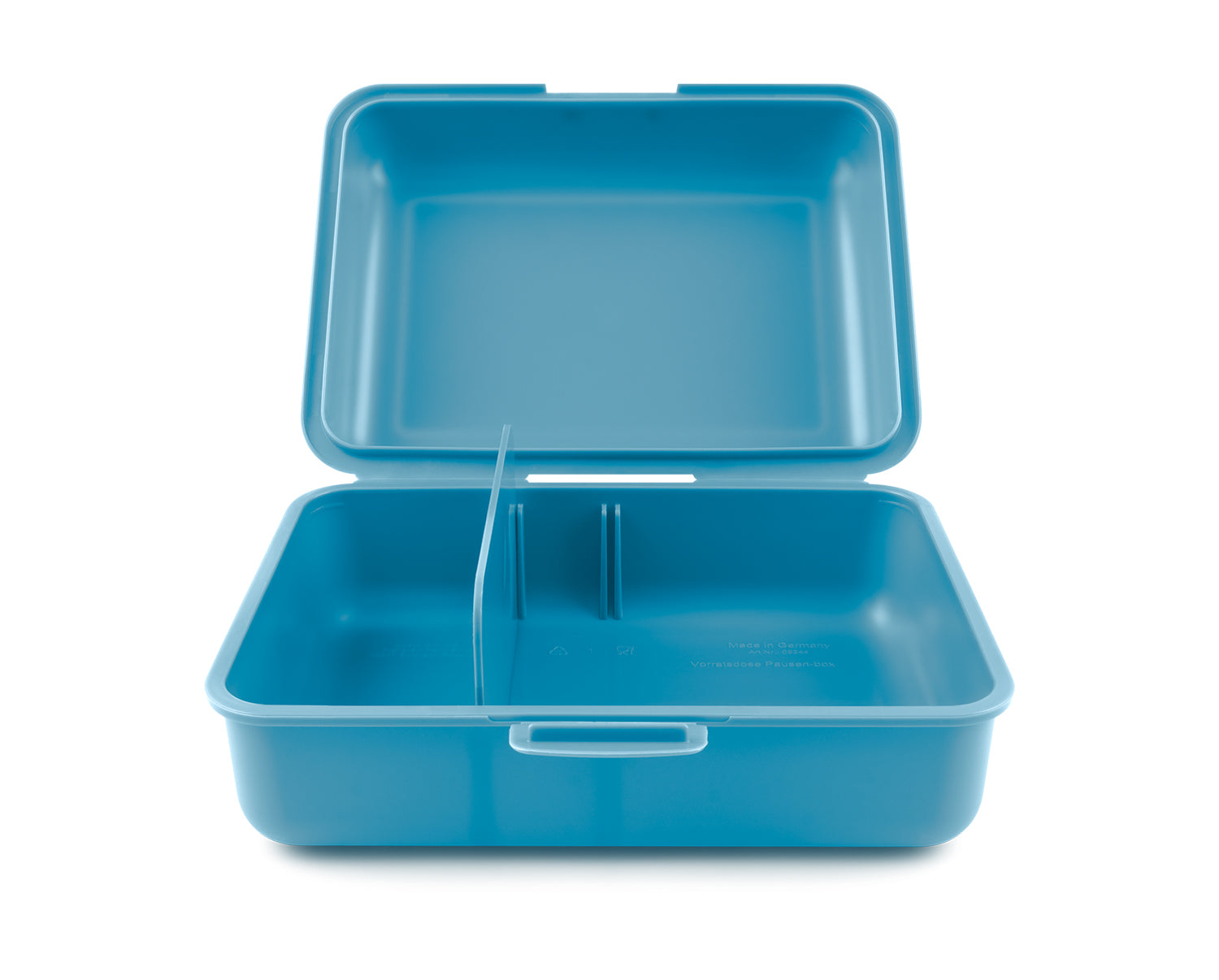 • Snackbox aus Kunststoff mit innerer Trennwand.