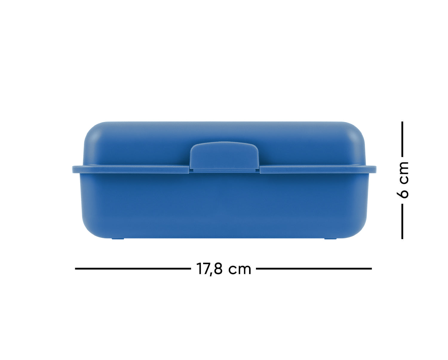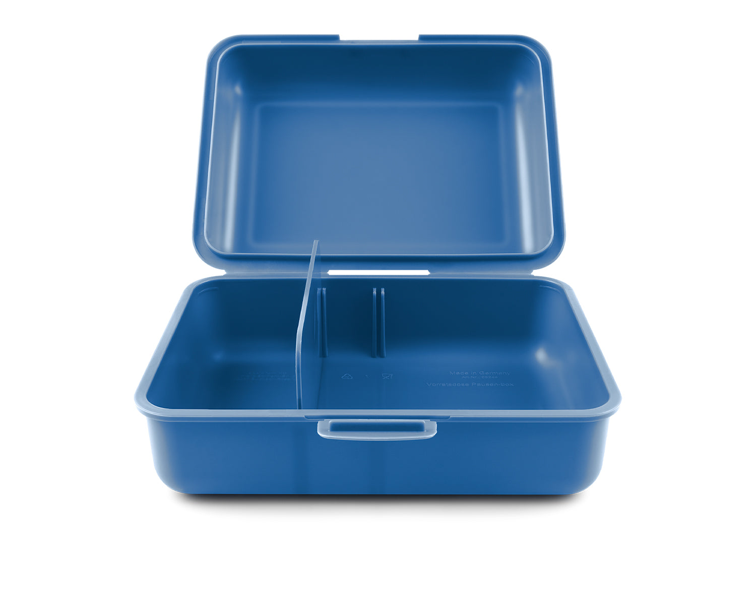 • Snackbox aus Kunststoff mit innerer Trennwand.