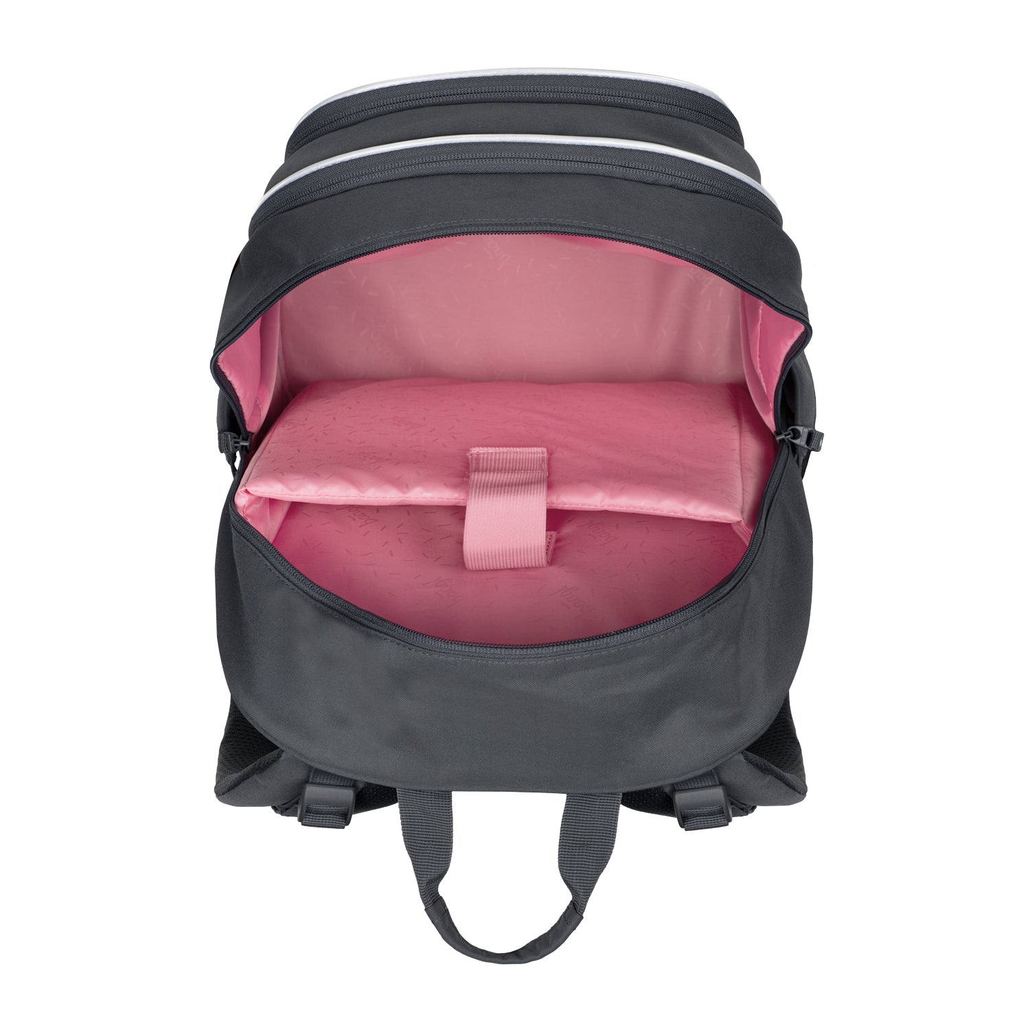 • Ergonomic school backpack with three individually closable compartments, internal organiser and a pocket for a 15" laptop or tablet.