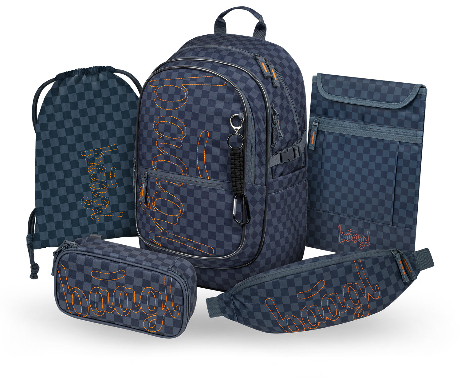 Design-Set Core SKA bietet alles, was man in der Schule braucht. Das Vorteilset umfasst einen ergonomischen Core-Rucksack, ein Etui-Federmäppchen, einen Turnbeutel, eine Laptophülle und eine Bauchtasche – alles im SKA-Design mit BAAGL-Logo.