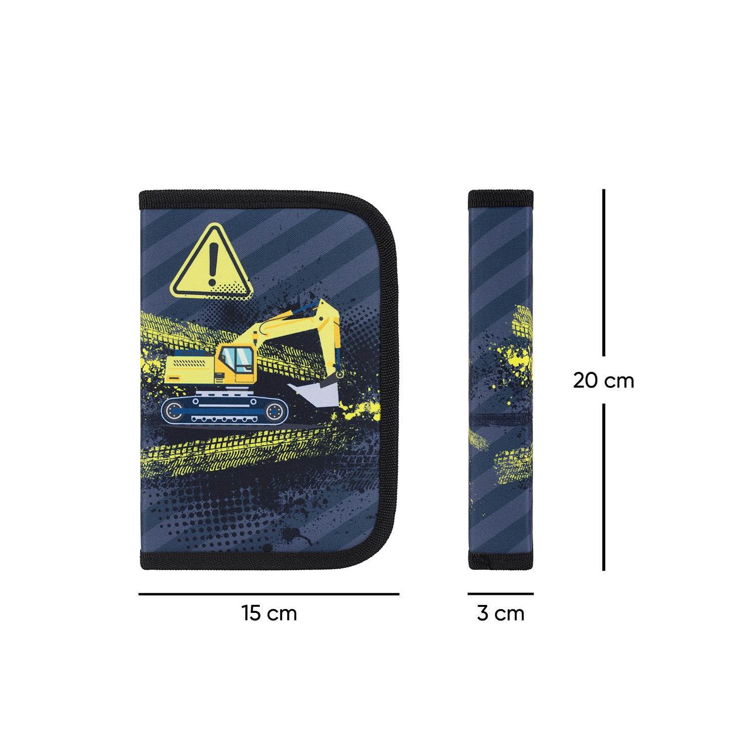 Klassisches Federmäppchen mit Bagger-Motiv, mit einem Reißverschluss und Platz für eine bessere Übersicht. Empfohlen für Kinder ab der 1. Klasse Grundschule. Das Federmäppchen lässt sich aufklappen, so dass alles bequem hineinpasst.