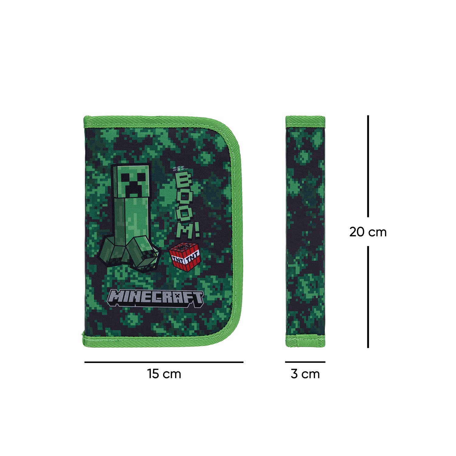 2-Fach-Schul-Federmäppchen mit stabilen Gummischlaufen für eine übersichtliche Anordnung von Schreibutensilien. Ideales Schulaccessoire nicht nur für Fans des Spiels Minecraft.