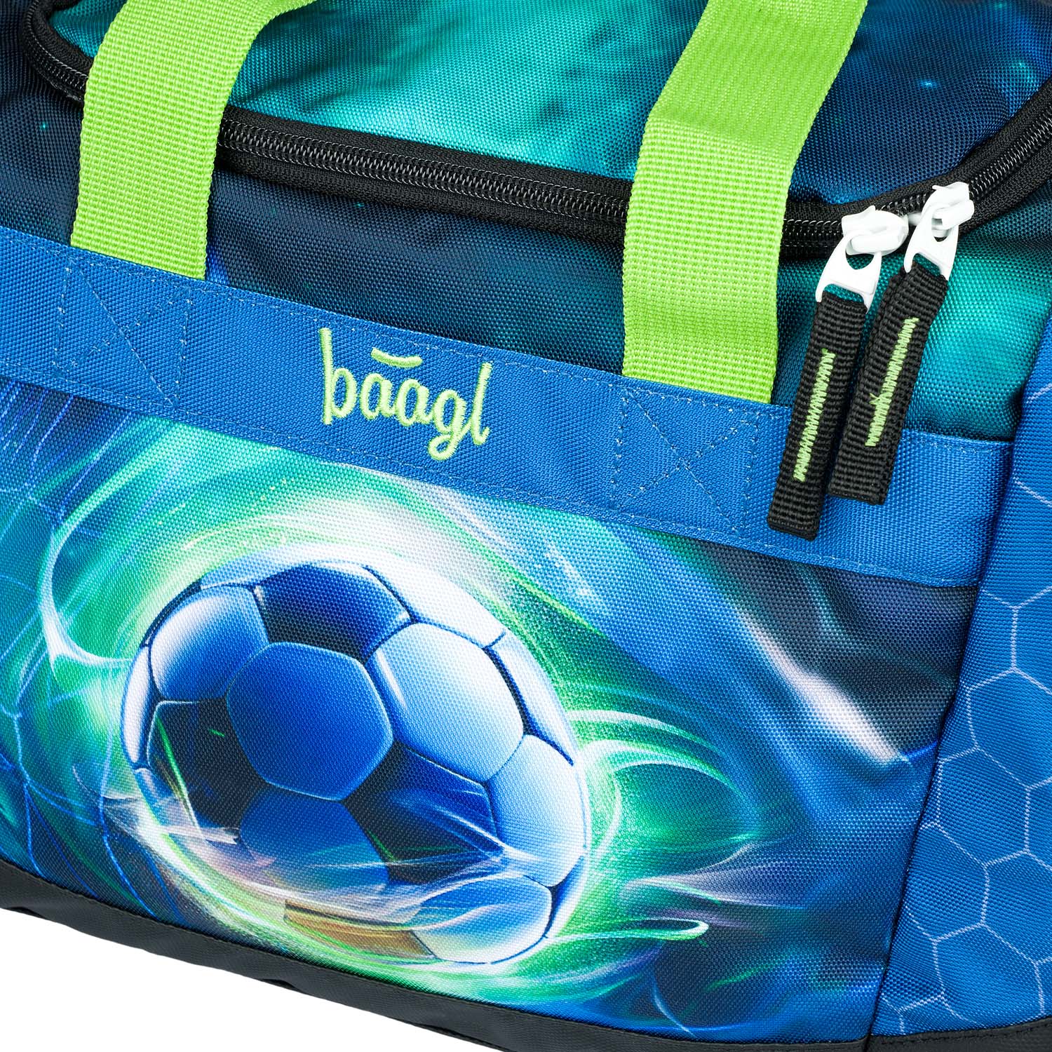 Kindersporttasche mit Fußballmotiv. Ein geräumiges Hauptfach mit breiter Öffnung und ein seitliches, erweitertes Schuhfach sorgen für ausreichend Platz für alle Utensilien eines jeden kleinen Sportlers. Der Boden ist aus einem robusten, wasserabweisenden Material gefertigt, so dass der Inhalt der Tasche immer trocken bleibt.