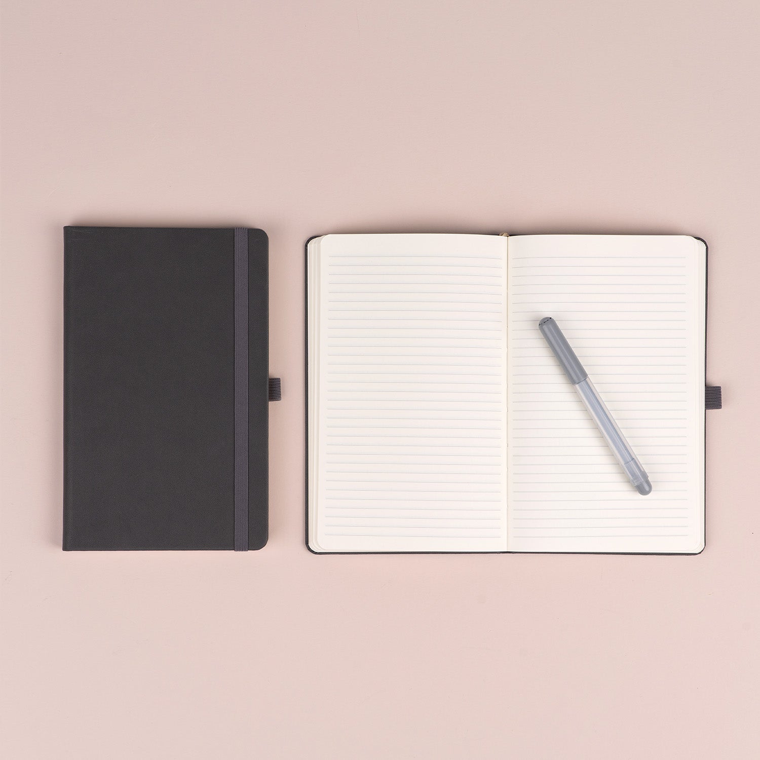 Praktisches liniertess Notizbuch in klassischem Grau und Oberfläche mit grober Textur.