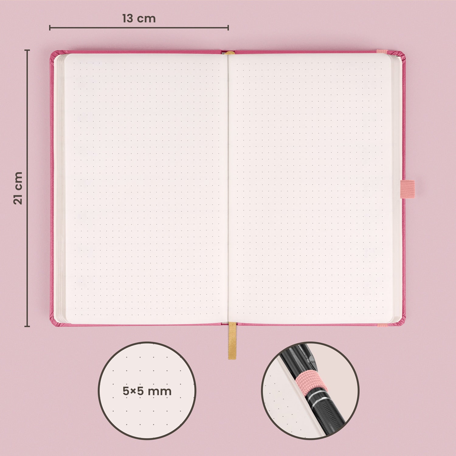Notizbuch Rosa, gepunktet, 13 × 21 cm