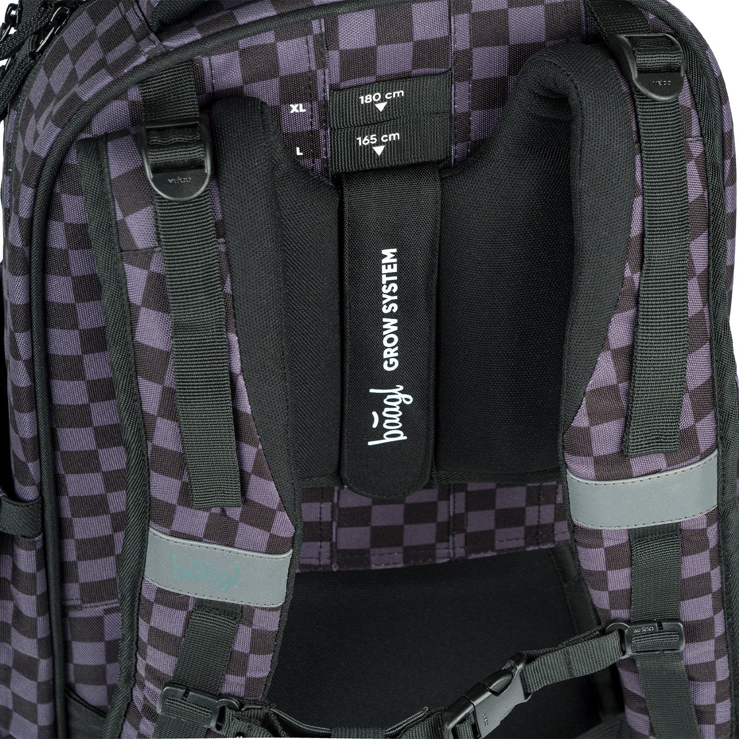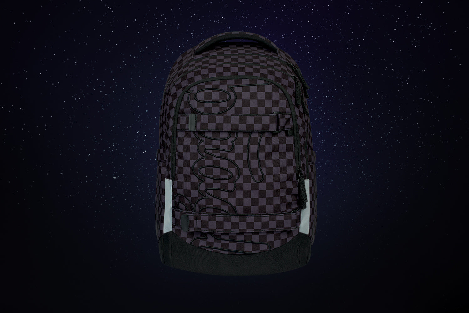 Trendiger Rucksack Skate Max SKA mit Riemen zur Befestigung eines Skateboards – dank verstellbarem Rückensystem an vier verschiedene Größen anpassbar.