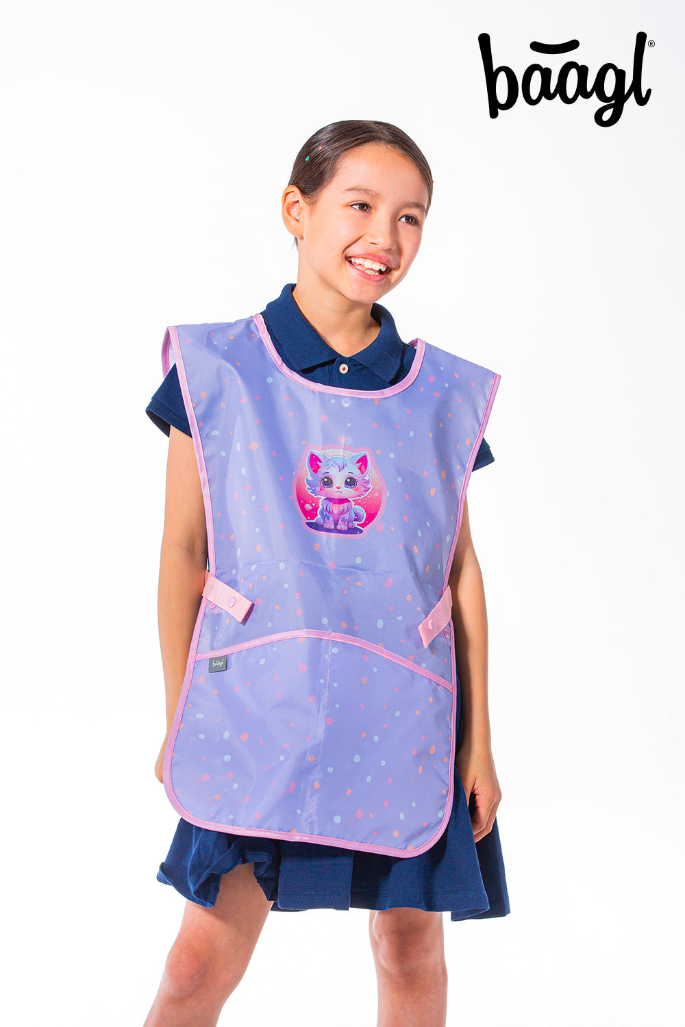 Schützen Sie die Kleidung Ihres kleinen Schulkindes mit einer praktischen Kunstschürze. Die Schürze mit dem niedlichen Katzenmotiv hat ein verstellbares Band, mit dem sie leicht an die aktuelle Größe Ihres Kindes angepasst werden kann, und ist aus hochwertigem, waschbarem Material gefertigt.