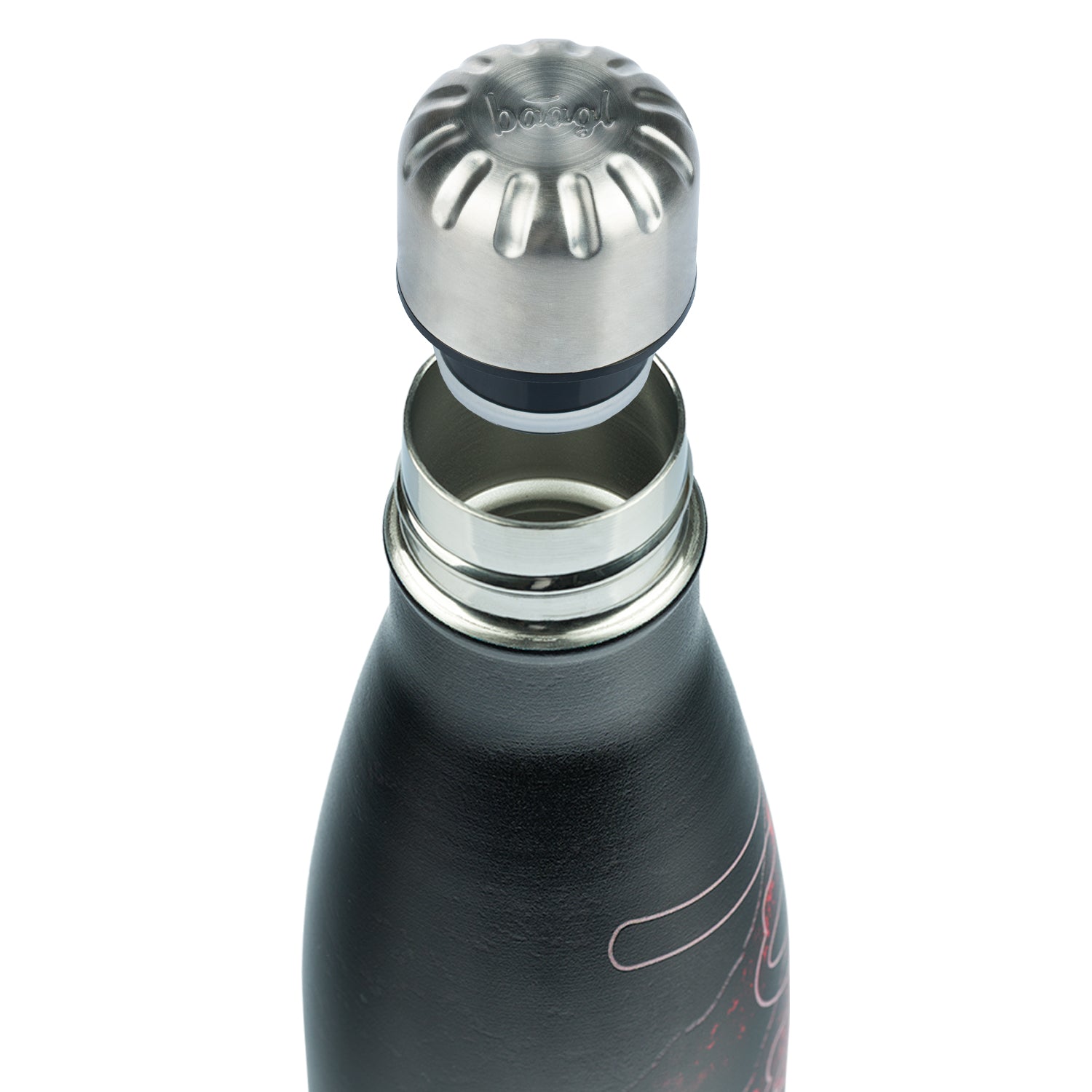 • Design-Thermoflasche mit Metallverschluss und BAAGL-Logo.
