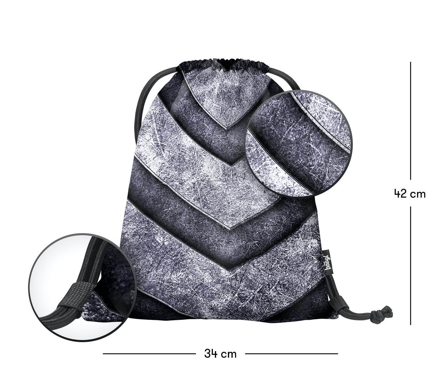 Grauer Turnbeutel für Jungen aus strapazierfähigem, abwaschbarem Material.