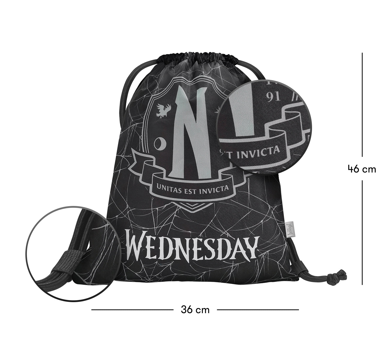 Praktischer Beutel für Schuhe oder Turnschuhe mit einem einzigartigen Motiv aus der beliebten amerikanischen Serie Wednesday.