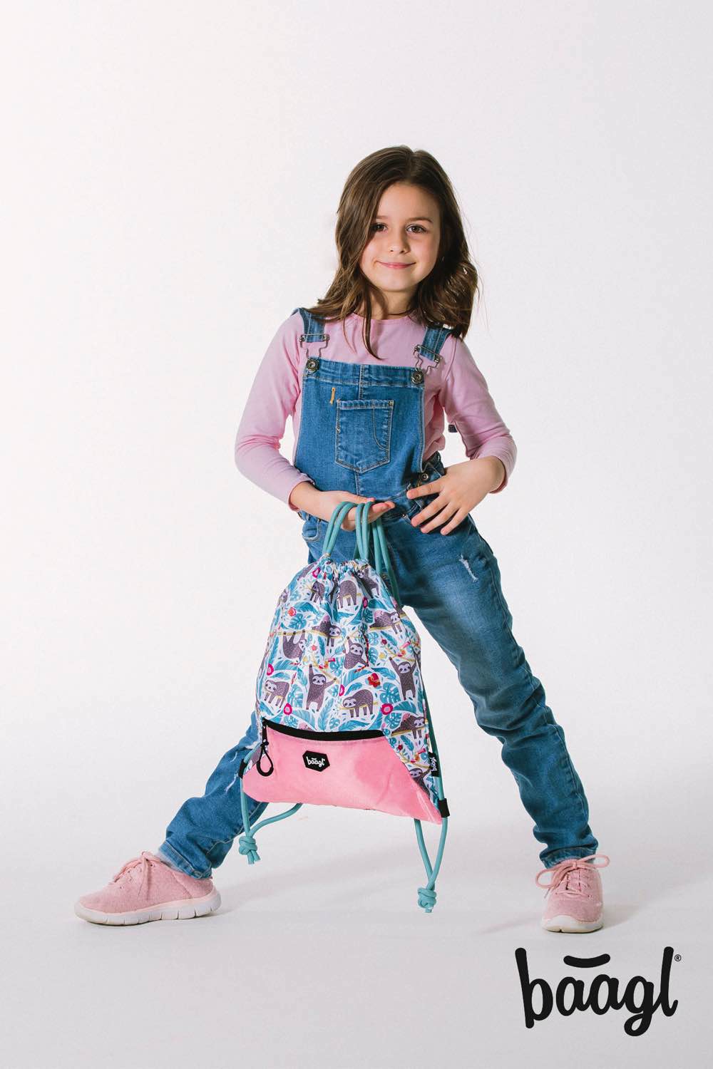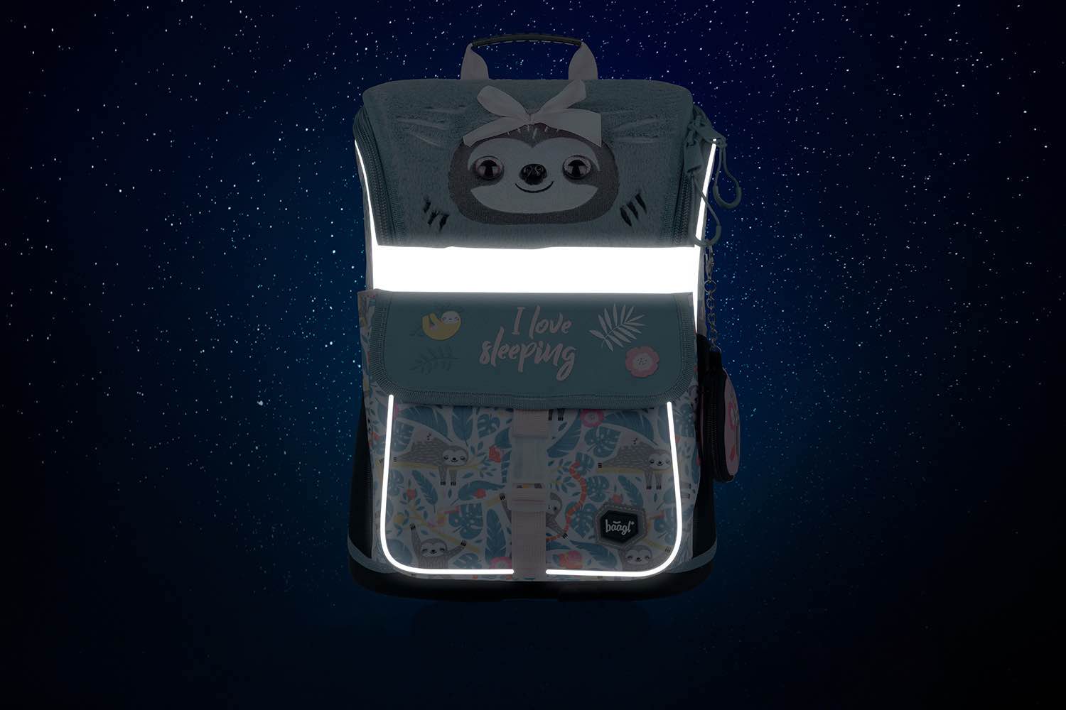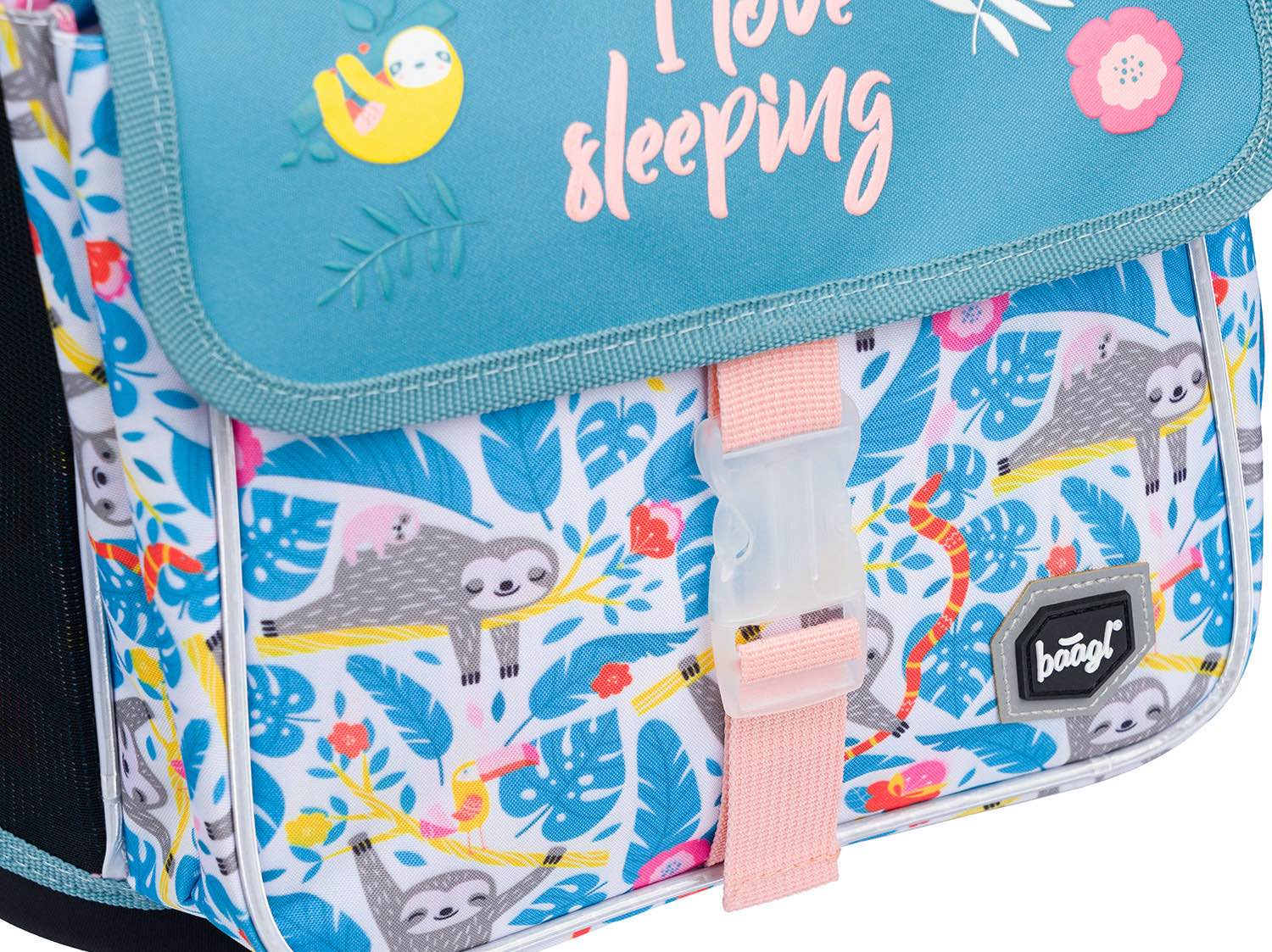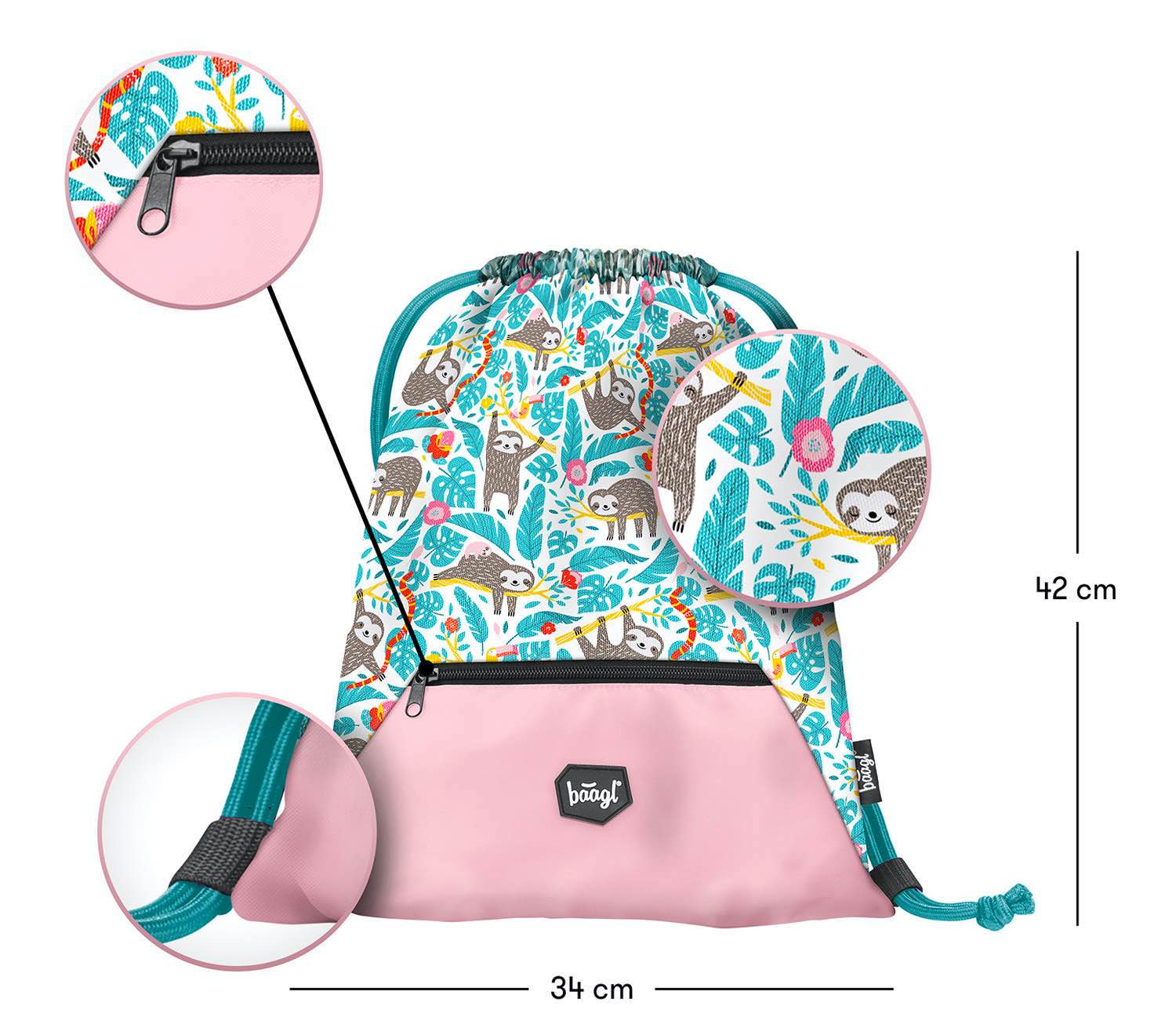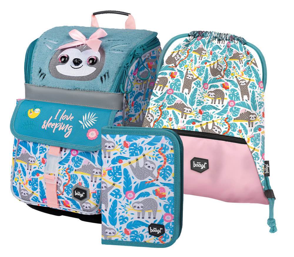 Zippy Sloth Schulranzen in einem preiswerten Set mit einem Federmäppchen und einem Turnbeutel.