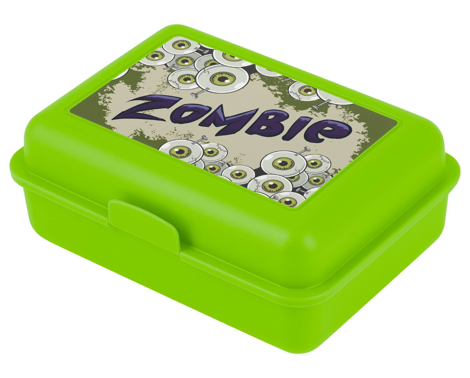 Brotdose für Jungen aus Kunststoff in grün mit Zombie-Motiv.