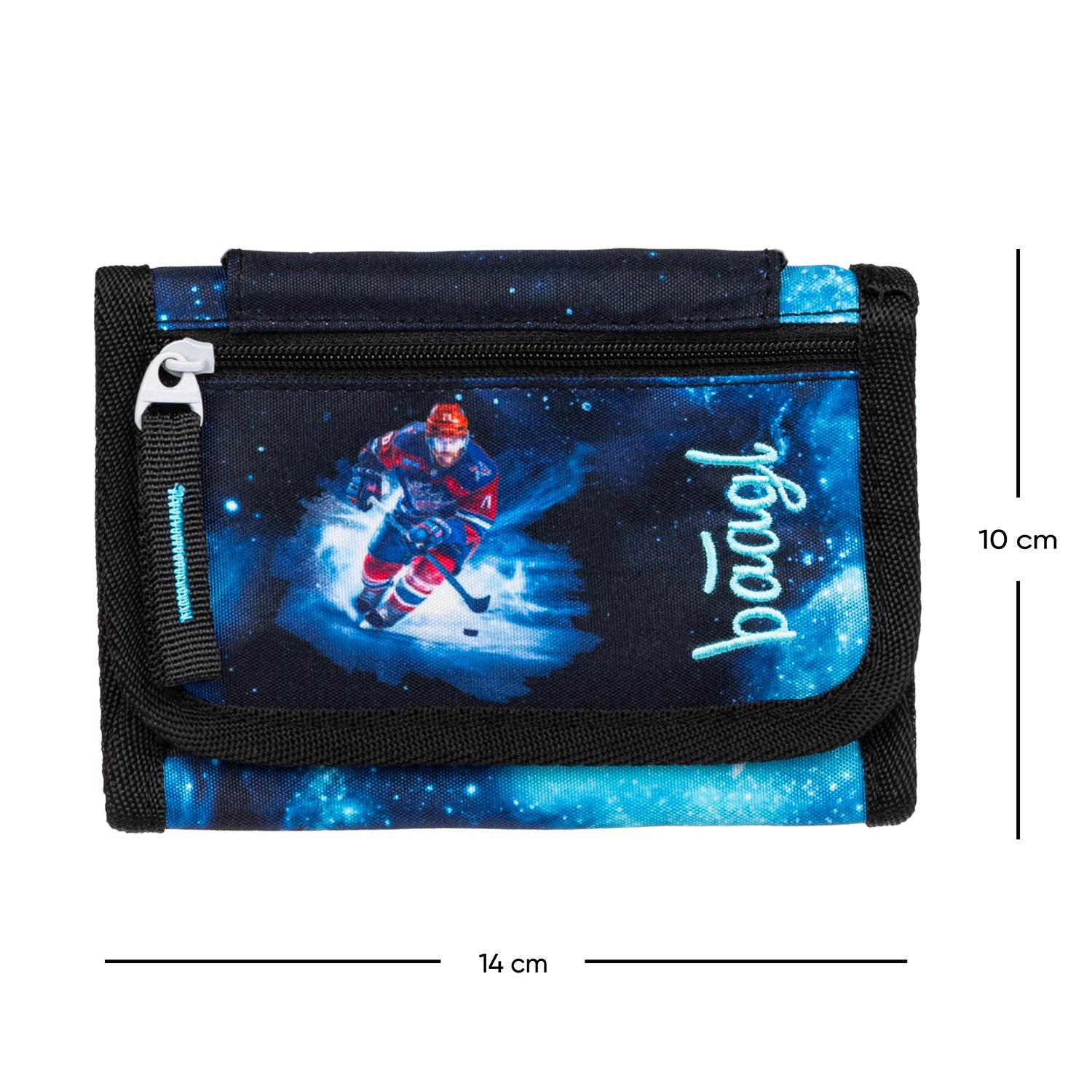 Blaue Geldbörse für junge Sportler und Eishockeyfans bietet ausreichend Platz für Essenschip, Fahrkarte und Taschengeld. Dank Namensschild und Halskordel hat das Schulkind alles Wichtige stets griffbereit.