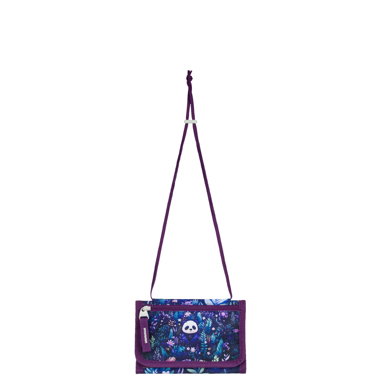 Praktische Klettverschluss-Geldbörse mit niedlichem Panda-Motiv im Dschungel und einem praktischen Fach für Kleingeld, Lunch-Chip oder Schließfachschlüssel. Außerdem gibt es einen verstellbaren Kordelzug mit Sicherheitsverschluss zum Aufhängen um den Hals.