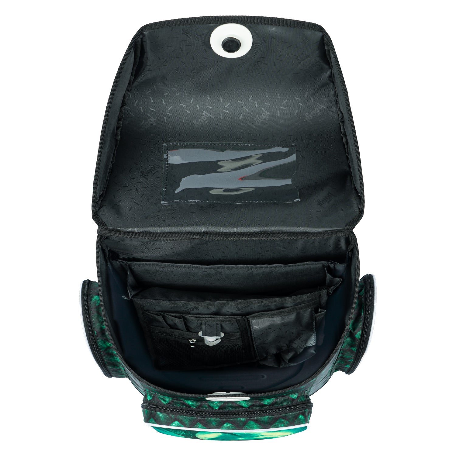 • Im Inneren des Schulranzens befinden sich ein transparentes Fach für Stundenplan sowie ein Organizer mit einem elastischen Band zur Fixierung, das für eine gleichmäßige Gewichtsverteilung sorgt.