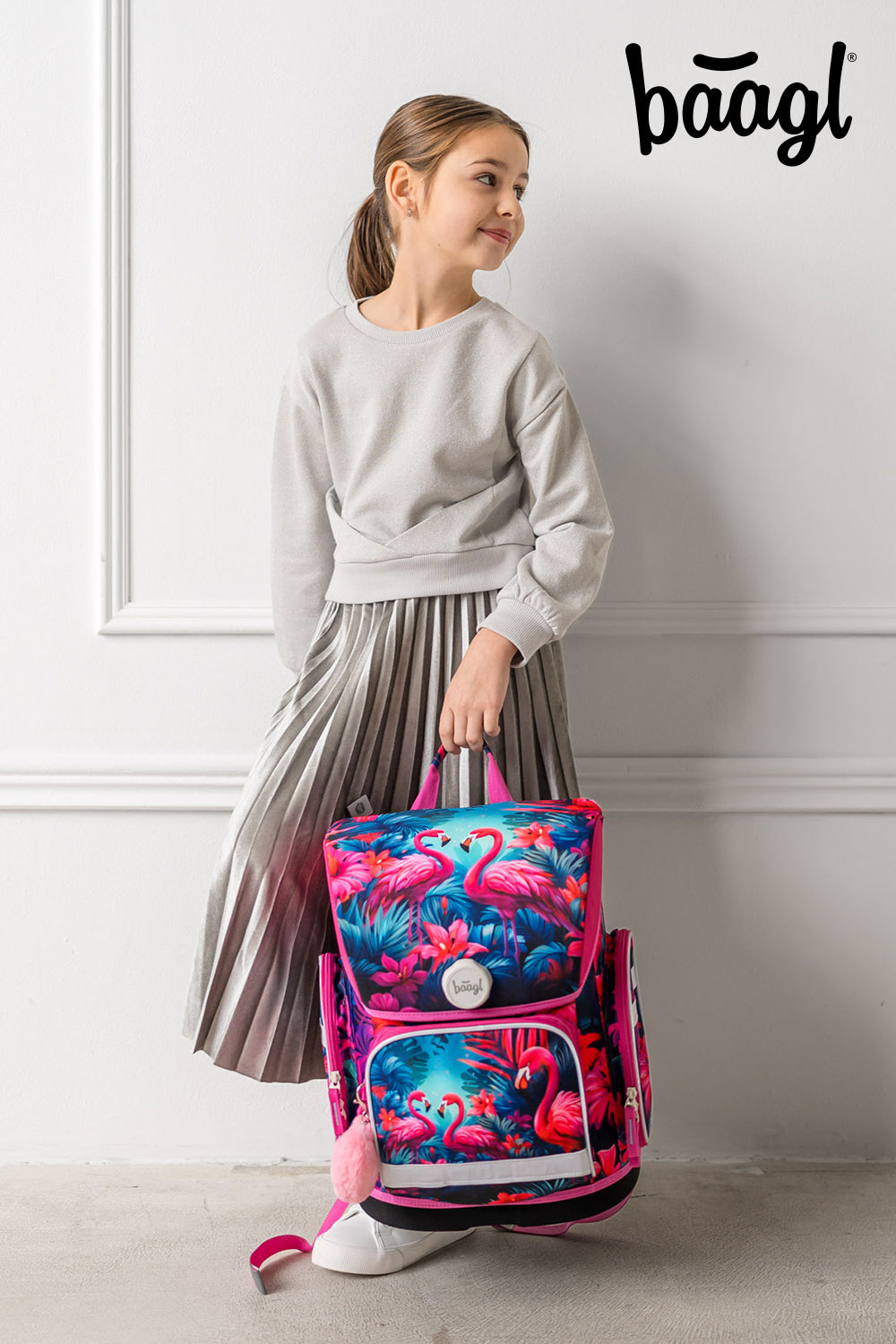 Mit dem Schulset Ergo Flamingos wird der erste Schultag Ihres Kindes zum Zuckerschlecken. Das attraktive Set umfasst einen kompakten Ergo Schulranzen mit Schiebesystem und romantischem Flamingo-Motiv, ein Federmäppchen, A4- Heftmappen, einen praktischen Turnbeutel und eine Brotdose mit dem gleichen Motiv.