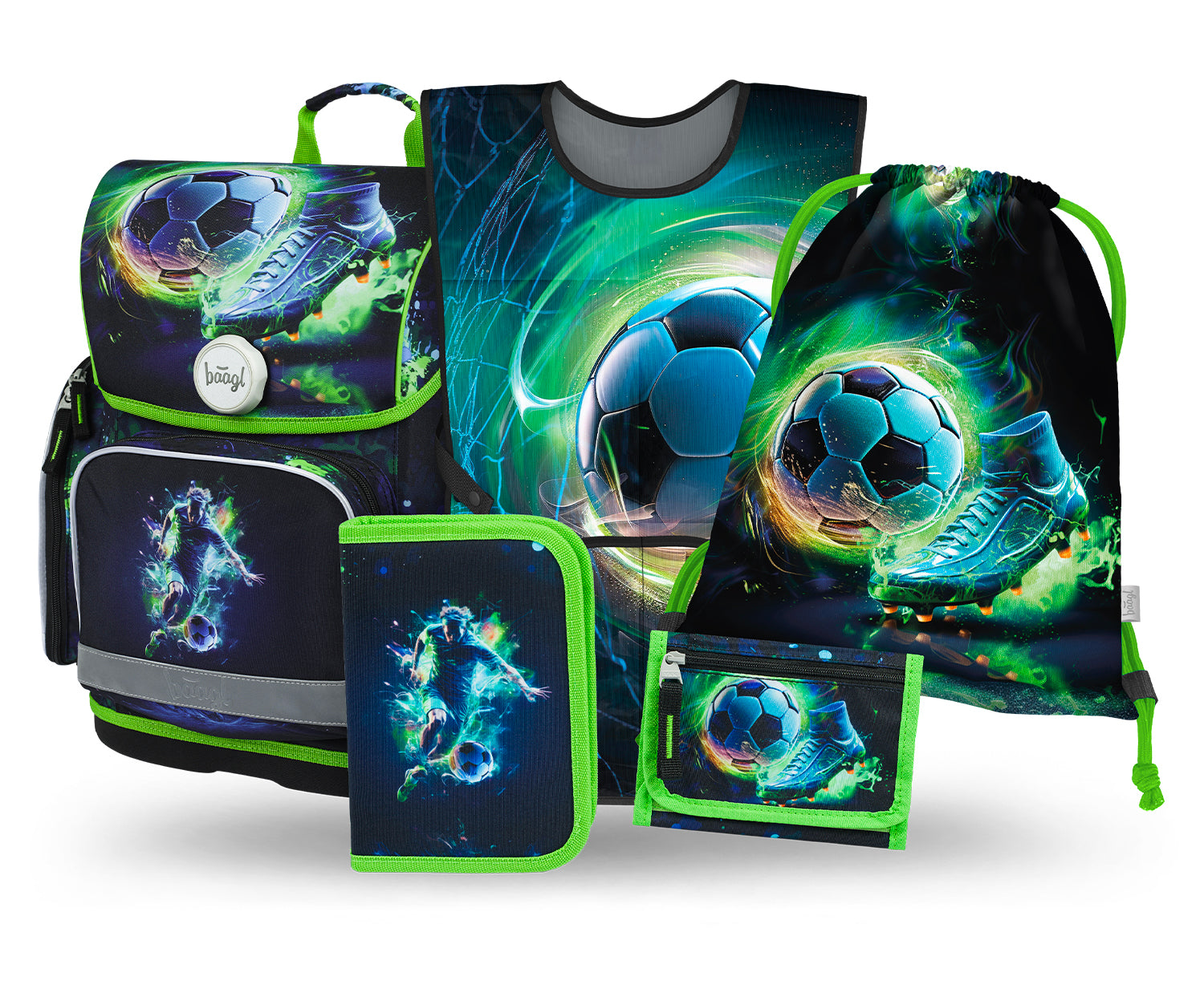 Ergo Fußballspieler Schulranzen-Set 5tlg.: Schulranzen, Federmäppchen, Turnbeutel, Schürze, Brustbeutel