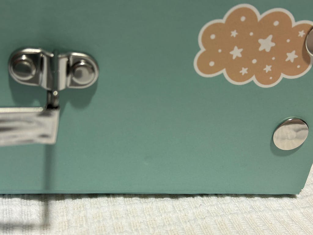 • Mit einem Metallgriff und einer Schnalle zum Verschließen.