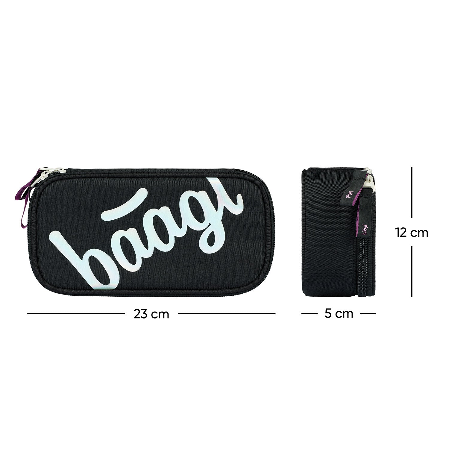 Hochwertiges Federmäppchen in schwarz mit BAAGL-Logo auf der Vorderseite.