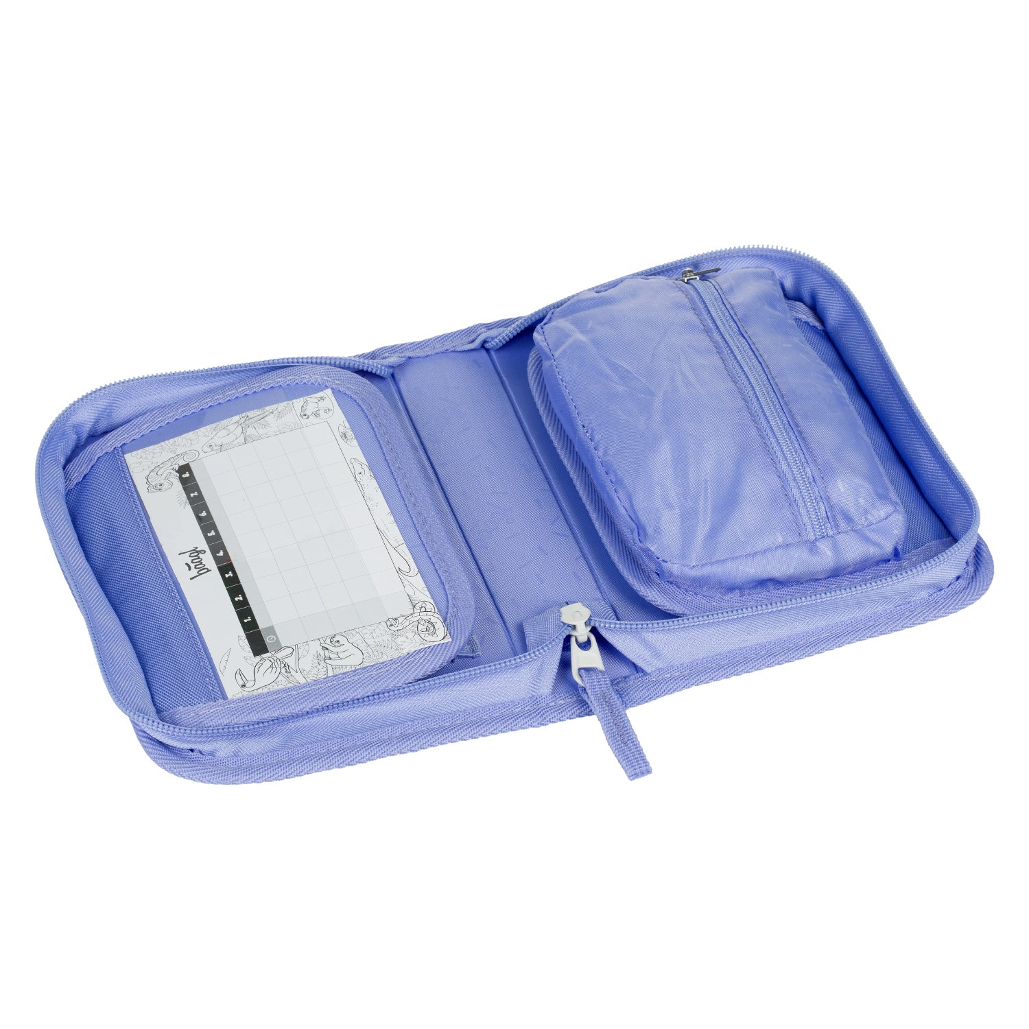Ein farbenfrohes Federmäppchen mit zwei Klappen und einer Reißverschlussöffnung zur einfachen Organisation von Schreibwaren. Hochwertige Gummibänder halten auch dickere Dreikantstifte, und dank einer speziellen Tasche bietet das Mäppchen viel Platz für Radiergummi, Schere, Anspitzer und andere Kleinutensilien.