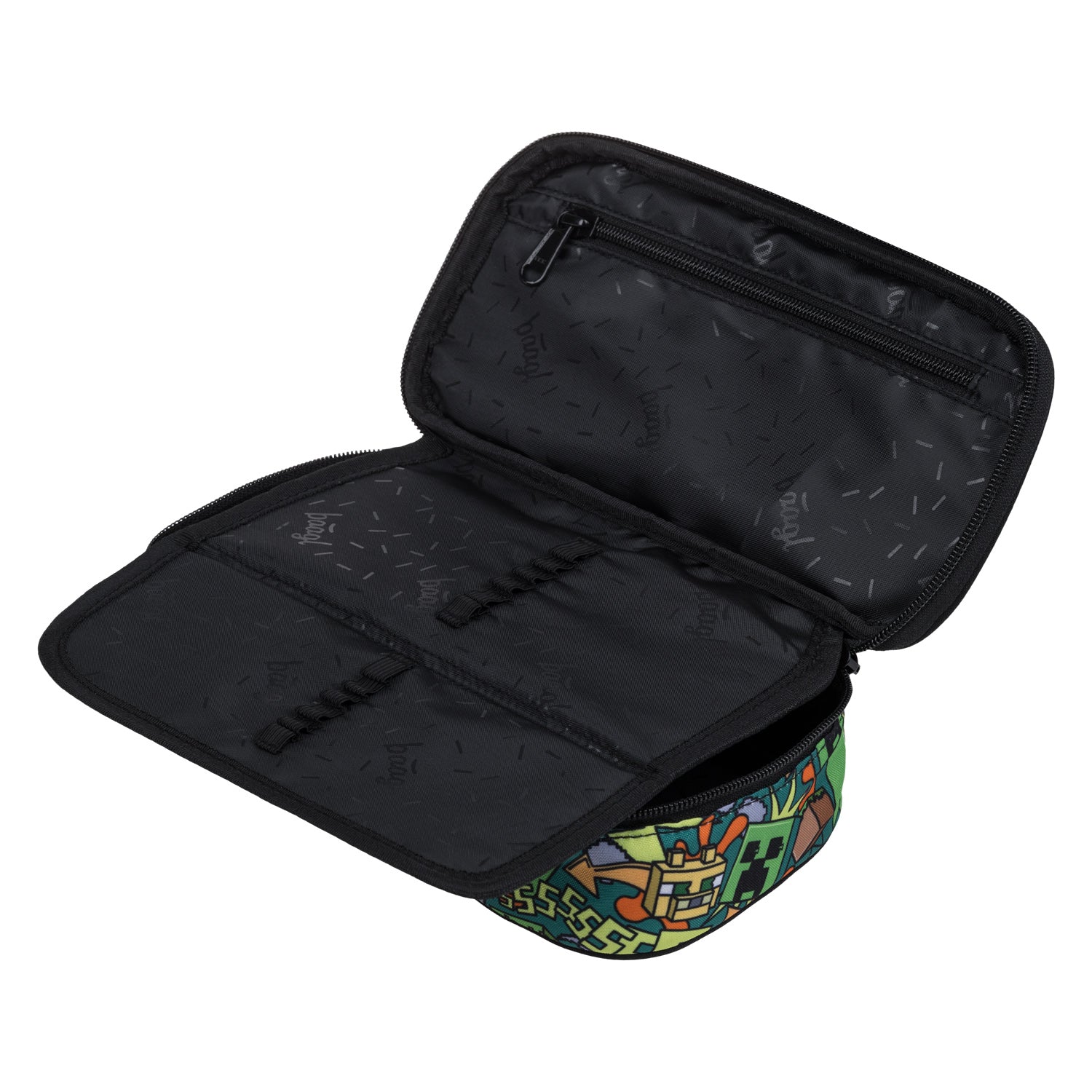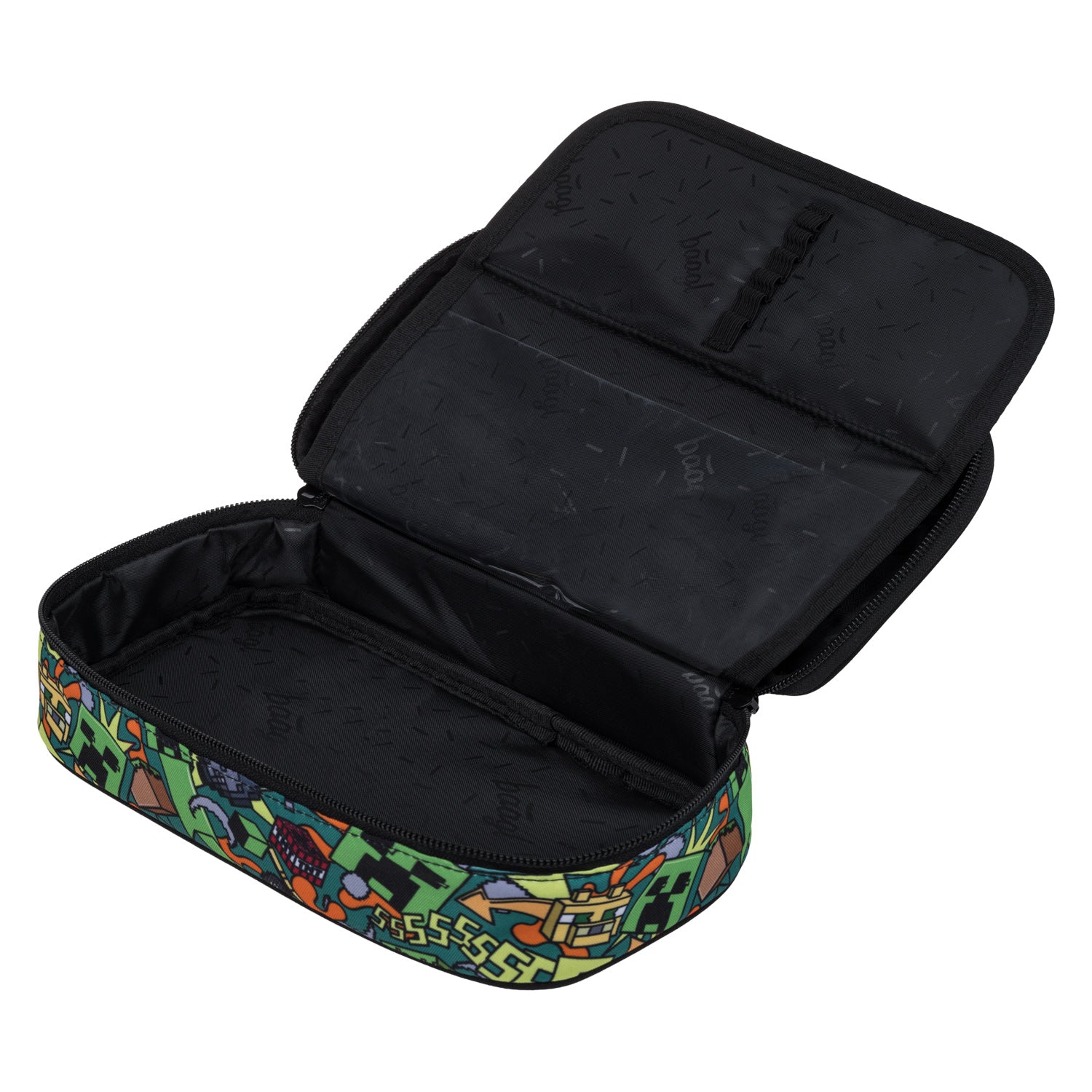 Praktisches Etui mit aufklappbarem Innenfach für eine übersichtliche Organisation von Schreibutensilien. Ideales Schulaccessoire nicht nur für Minecraft-Fans.