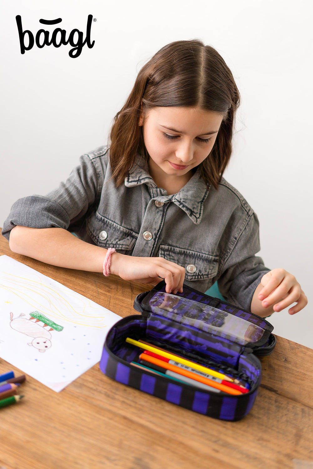 • Stabiles Federmäppchen für die Schule mit aufklappbarer Inneneinteilung.