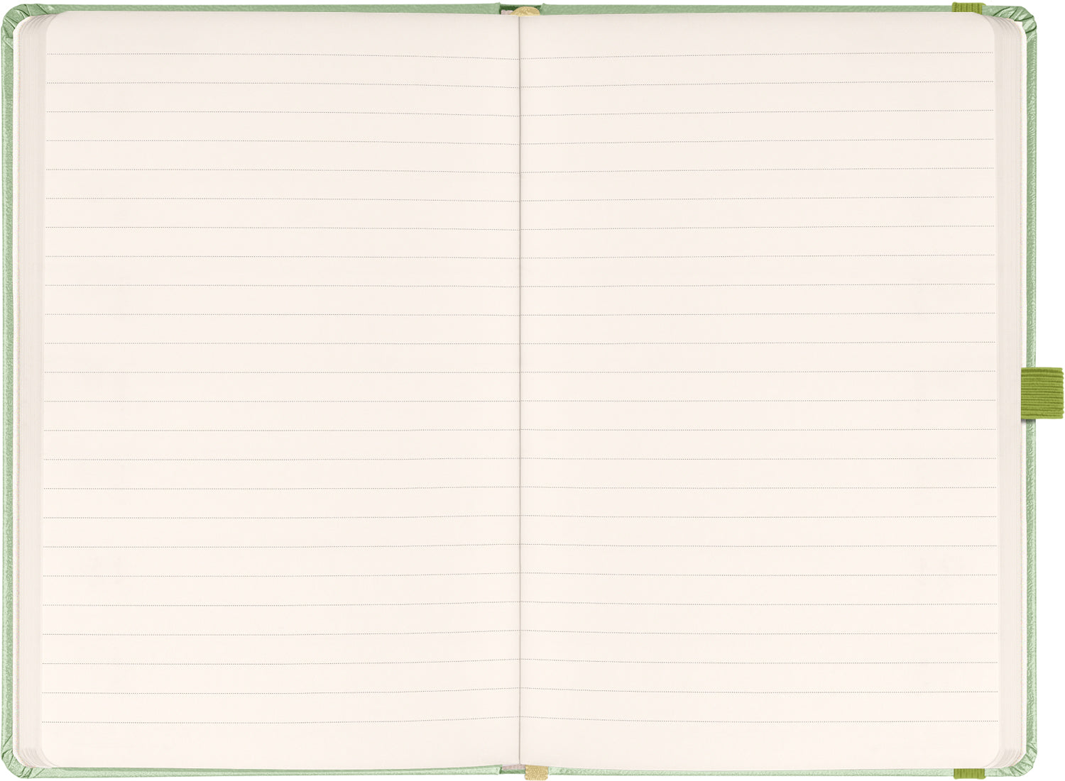 Praktisches liniertes Notizbuch in trendigem Grün und fein strukturierter Oberfläche.