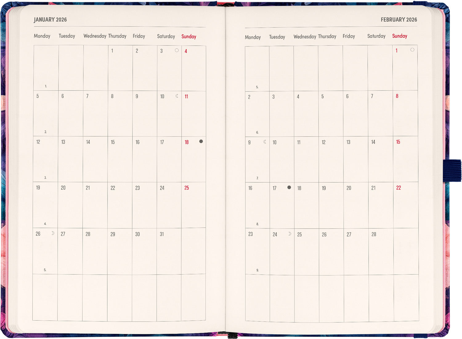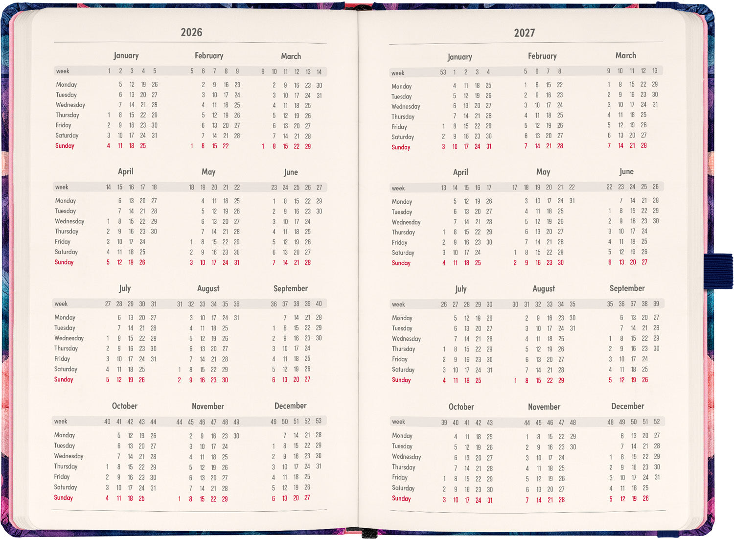 Perfekte Kombination aus Planer und Notizbuch mit Blumenmuster.