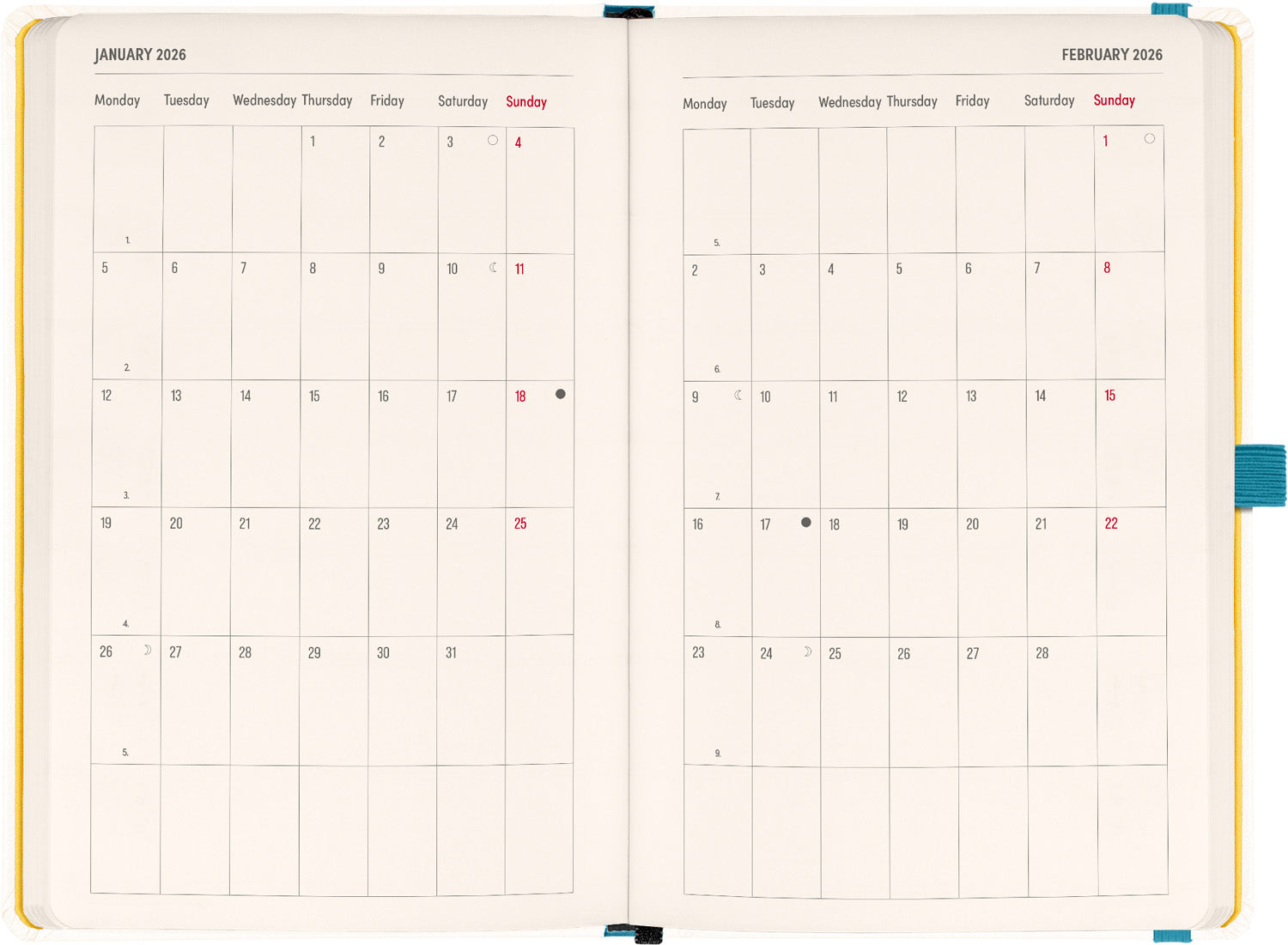 ZWEI WELTEN. EIN PRODUKT. Sie suchen die perfekte Kombination aus Planung und Notizen? Das PLANBOOK vereint beides! Die erste Hälfte enthält ein vierzehntägiges horizontales Kalendarium mit tschechischen und slowakischen Feiertagen, die zweite Hälfte bietet linierte Seiten für Ihre Notizen. Praktisch, stilvoll und perfekt an Ihre Bedürfnisse angepasst – ob für den Tagesplan oder die nächste große Idee. PLANBOOK ist ideal für alle, die Organisation und Kreativität verbinden möchten.