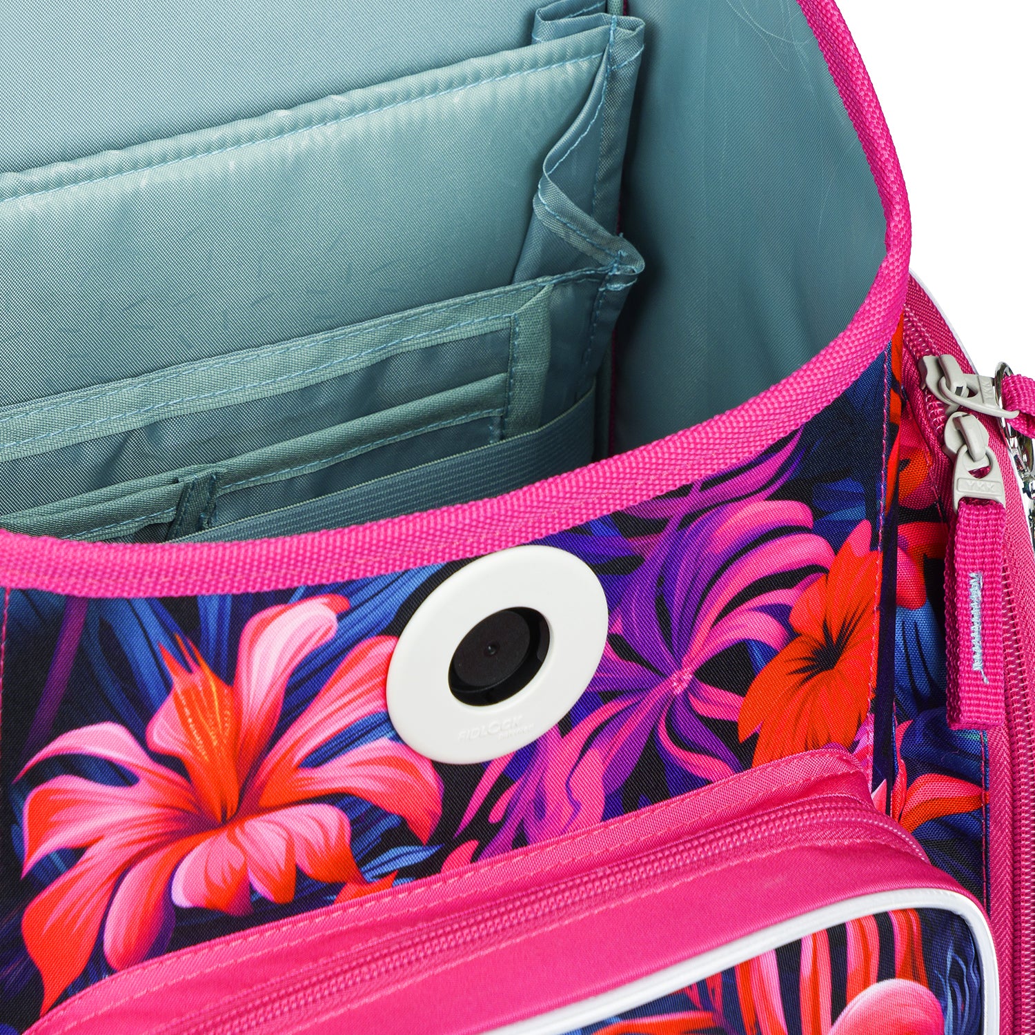 Der Ergo-Schulranzen für Mädchen mit romantischem rosa Flamingo-Motiv lässt das Herz eines jeden kleinen Schulmädchens höher schlagen. Er lässt sich durch ein Schiebesystem am Rücken auf die jeweilige Körpergröße des Kindes einstellen und verfügt über einen einzigartigen FIDLOCK-Verschluss für einfaches Öffnen und Schließen.