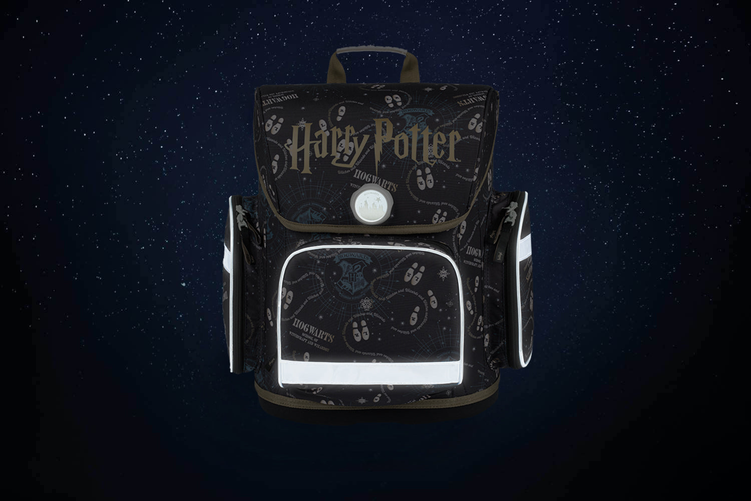 Ergo Schulranzen für Harry Potter-Fans mit Motiv der Karte des Rumtreibers. Dieser Schulranzen ist ab der 1. Klasse der Grundschule geeignet.