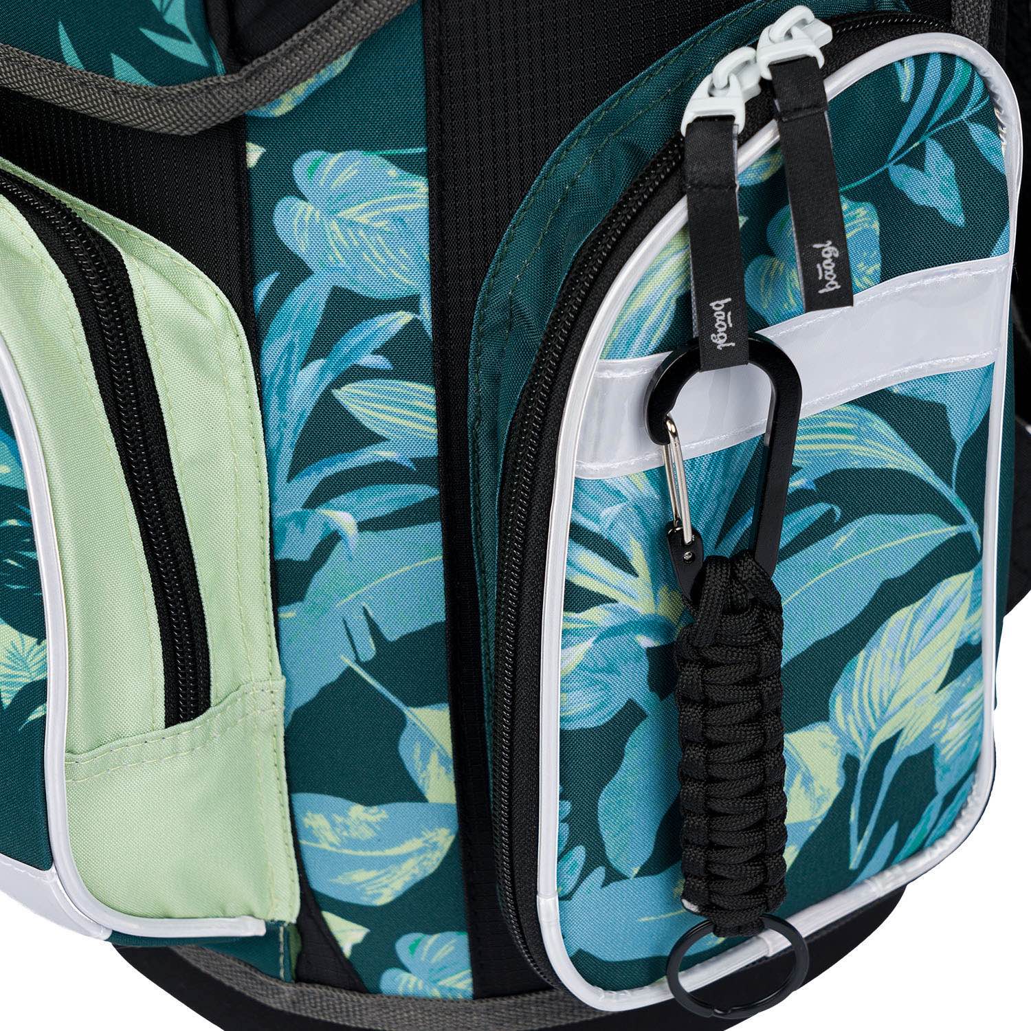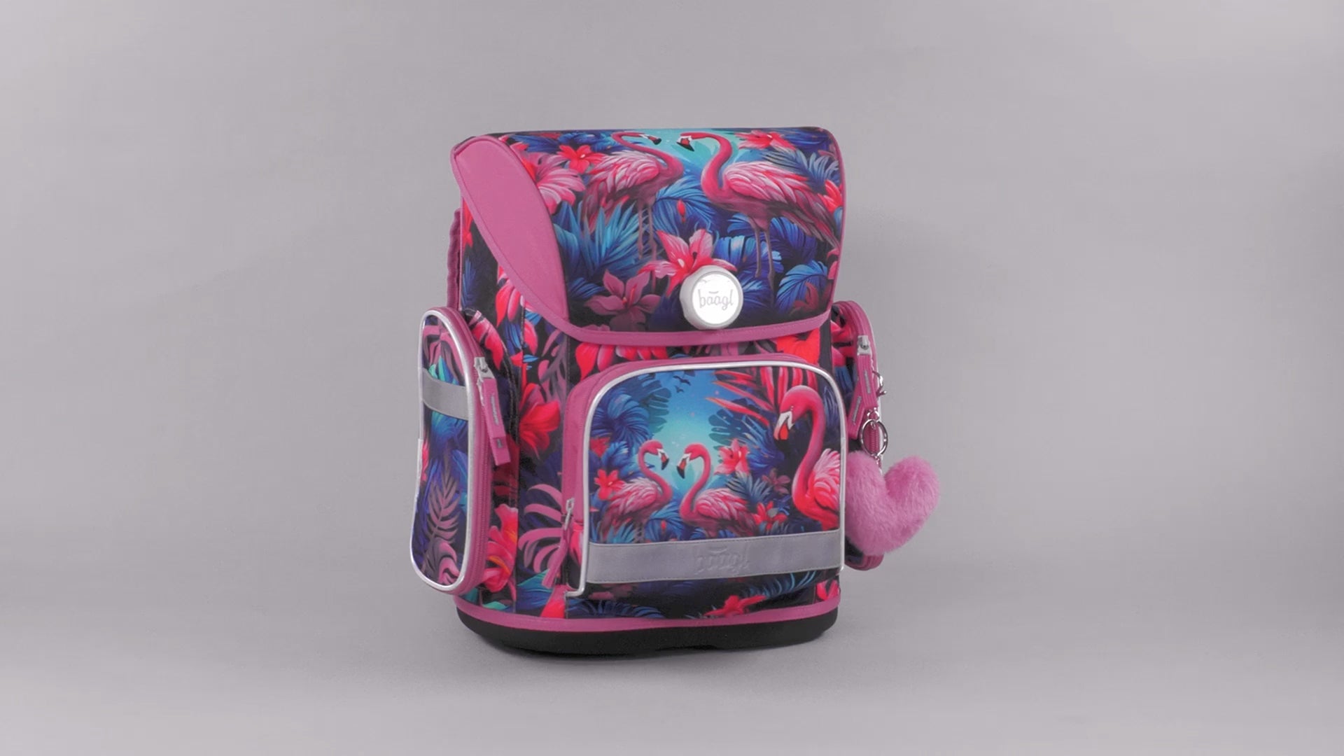 • Der Schulranzen ist mit einem trendigen Anhänger ausgestattet.