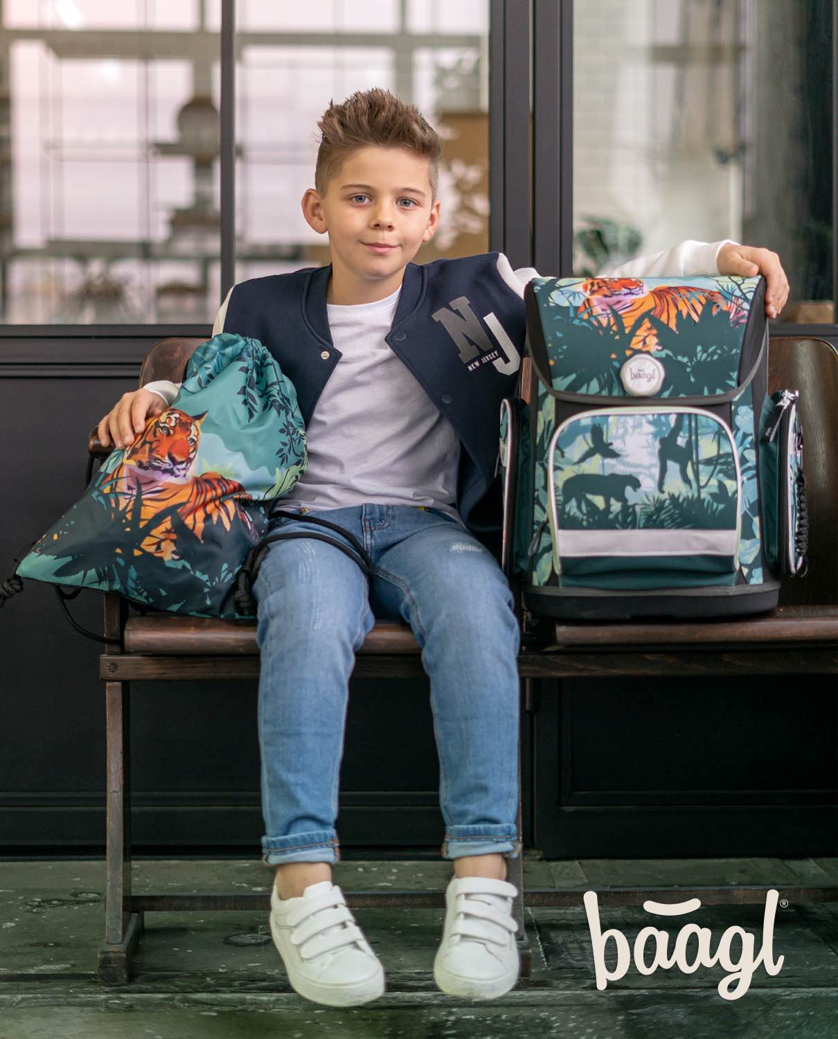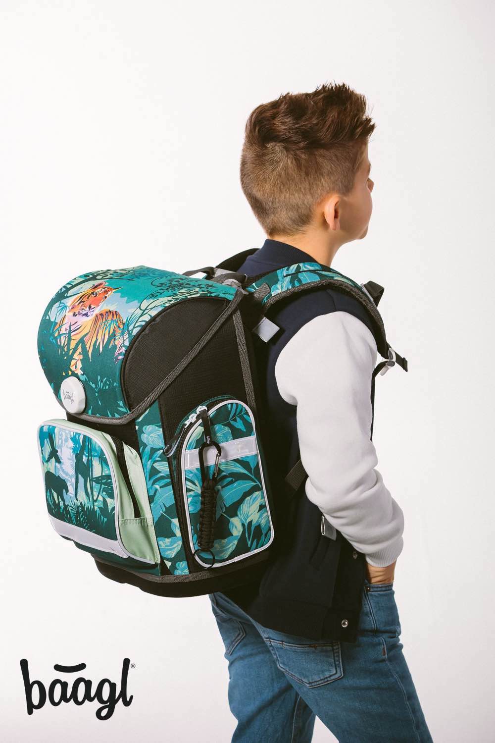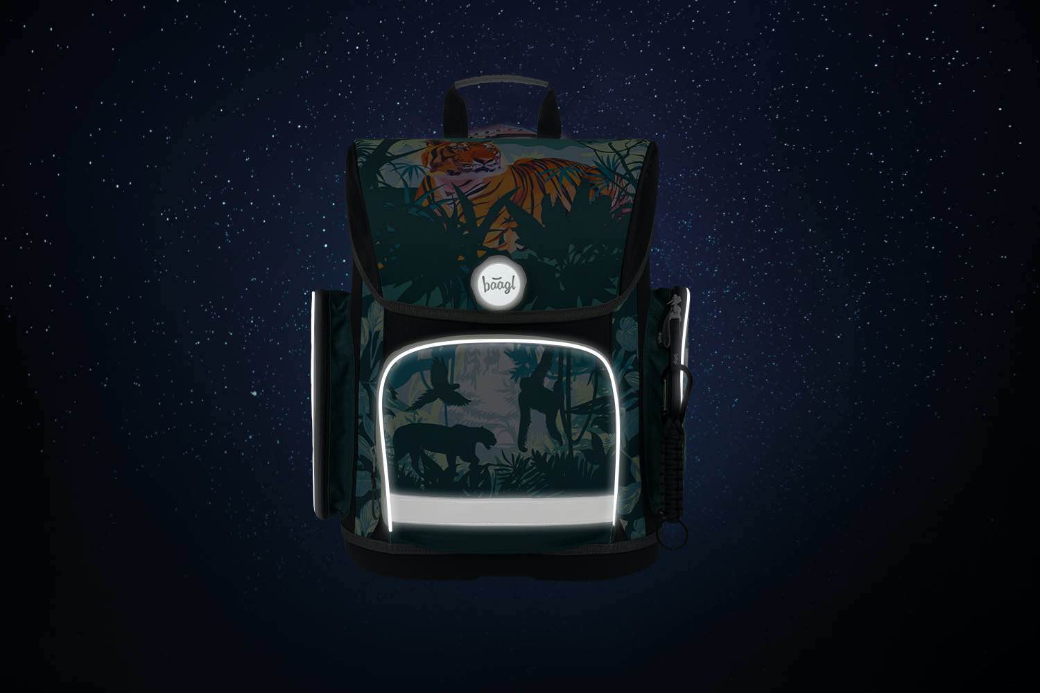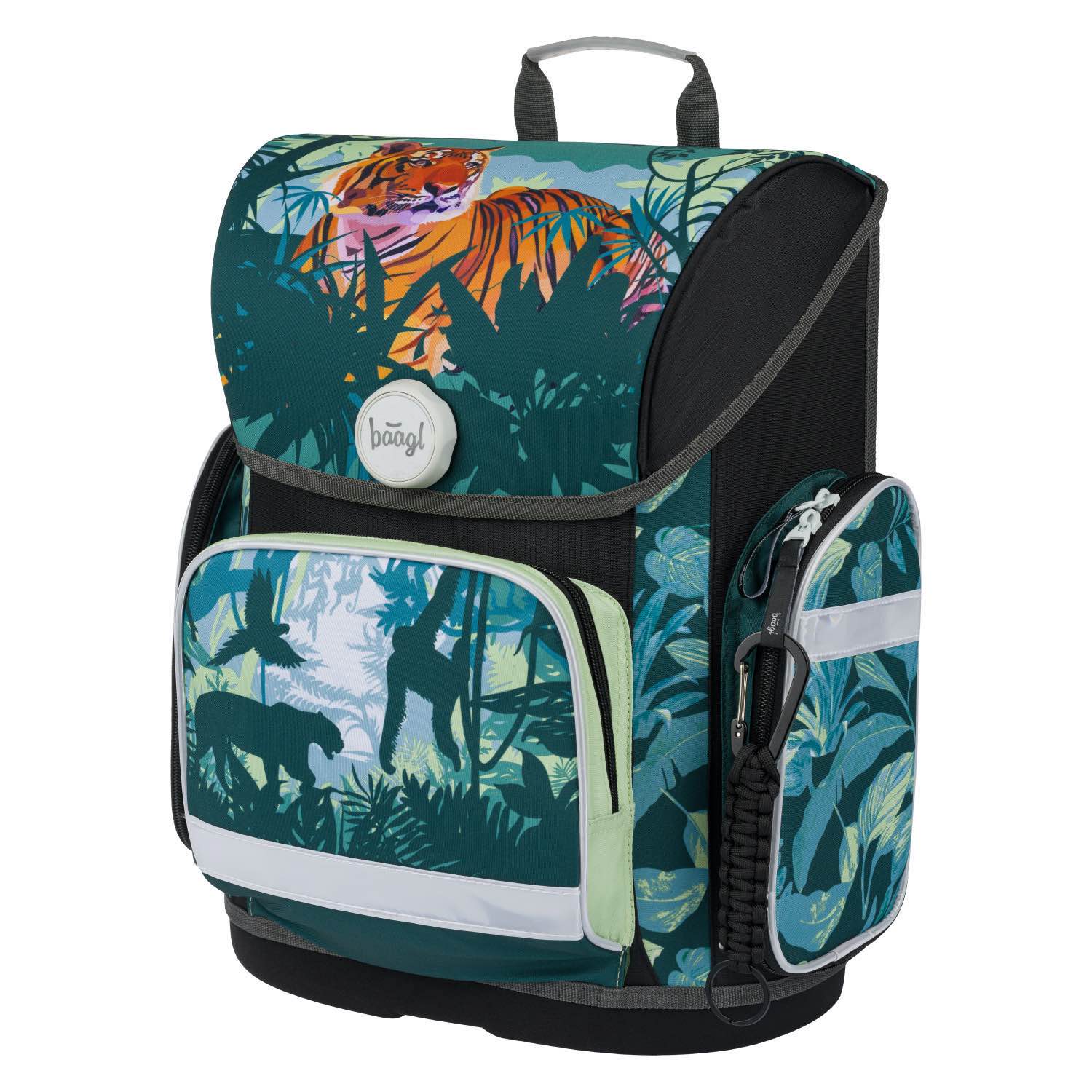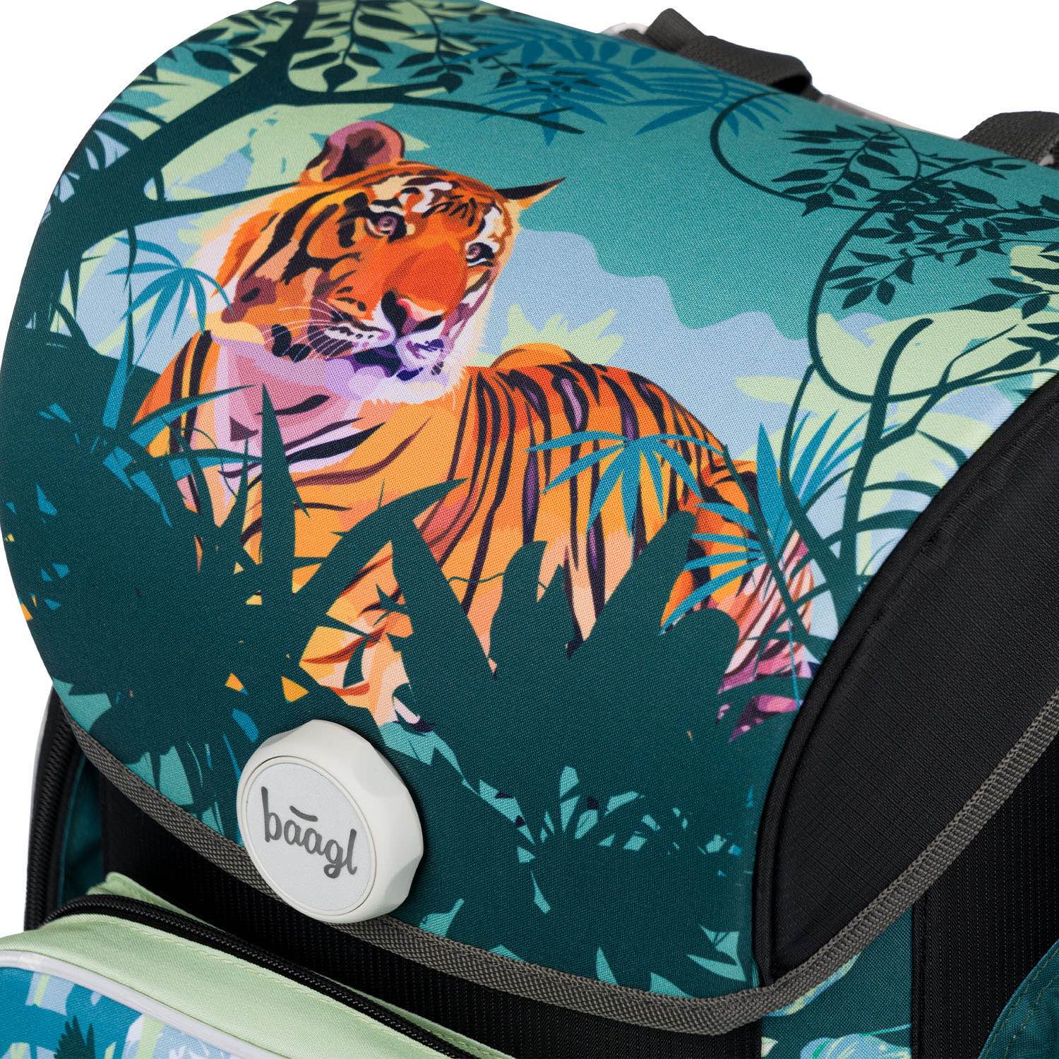 Der ERGO Schulranzen mit Tiger-Lord-of-the-Jungle-Motiv ist ab der 1. Klasse Grundschule geeignet. Der einzigartige Fidlock-Magnetverschluss ermöglicht den Erstklässlern eine leichte Handhabung.