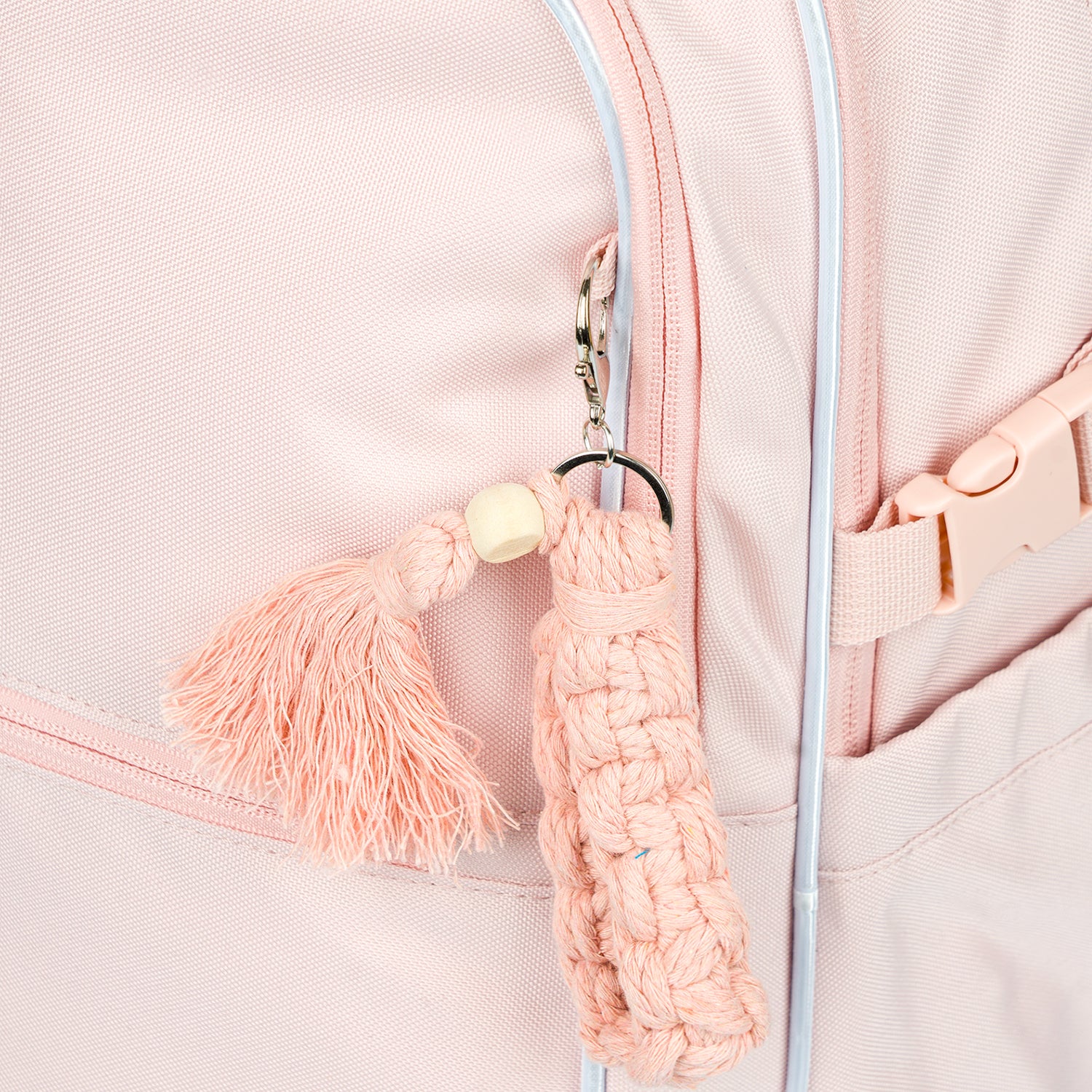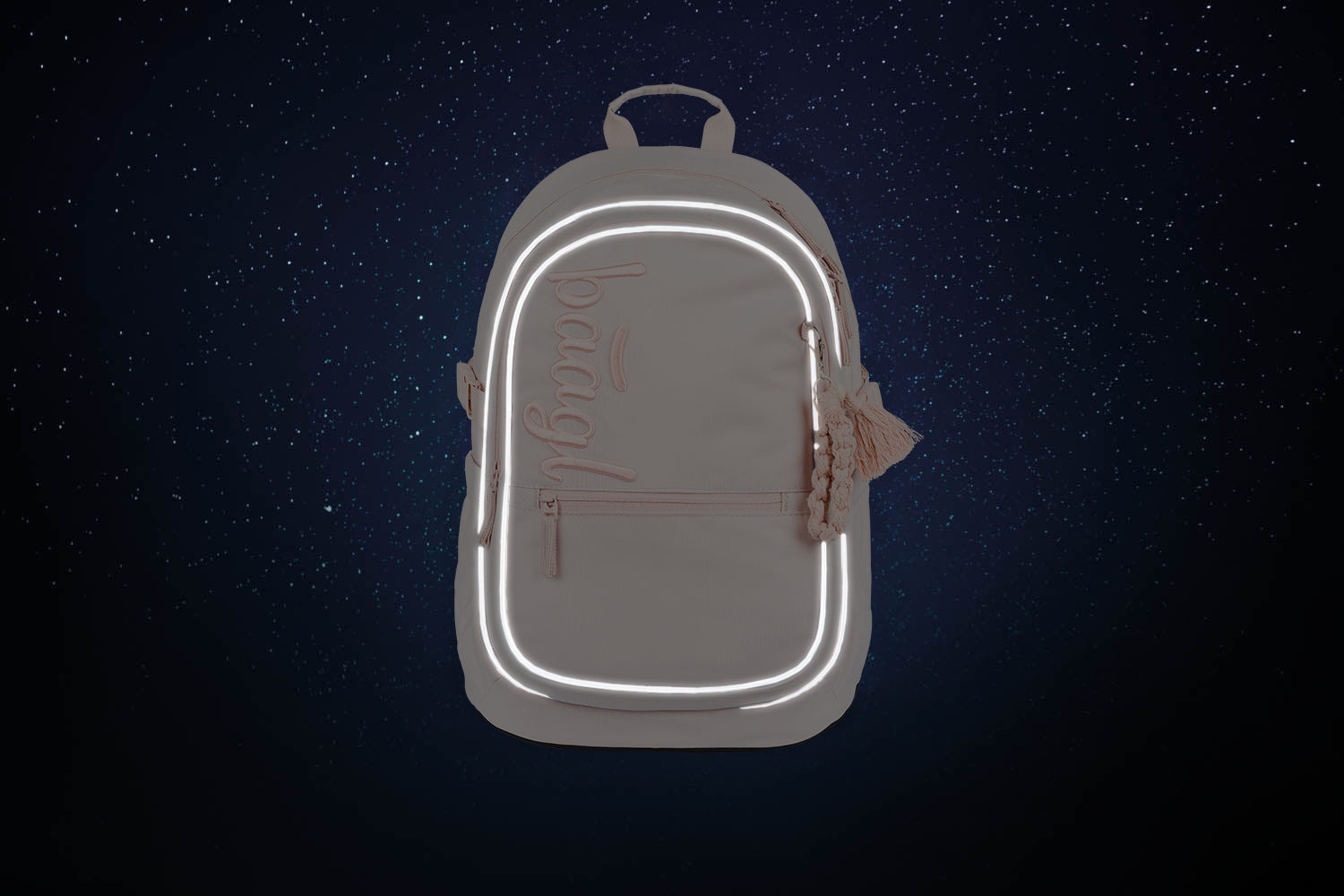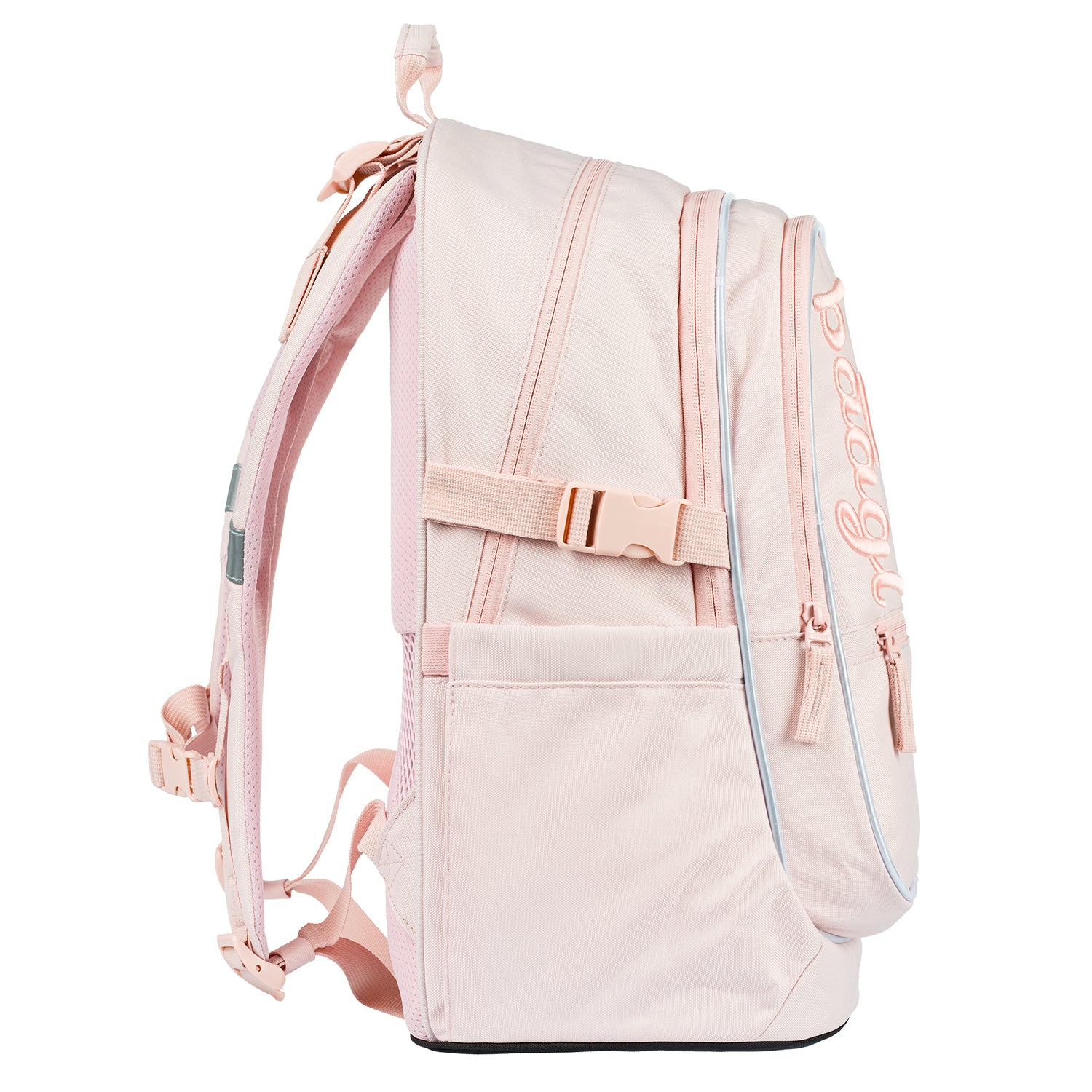 Der creme-rosa Rucksack mit dezentem BAAGL-Logo, Geschenkband und zarten Details wird zu einem unverzichtbaren Teil des Outfits eines jeden Schulmädchens. Er ist aus recyceltem Material hergestellt und sein minimalistisches Design wird einfach nie langweilig.
