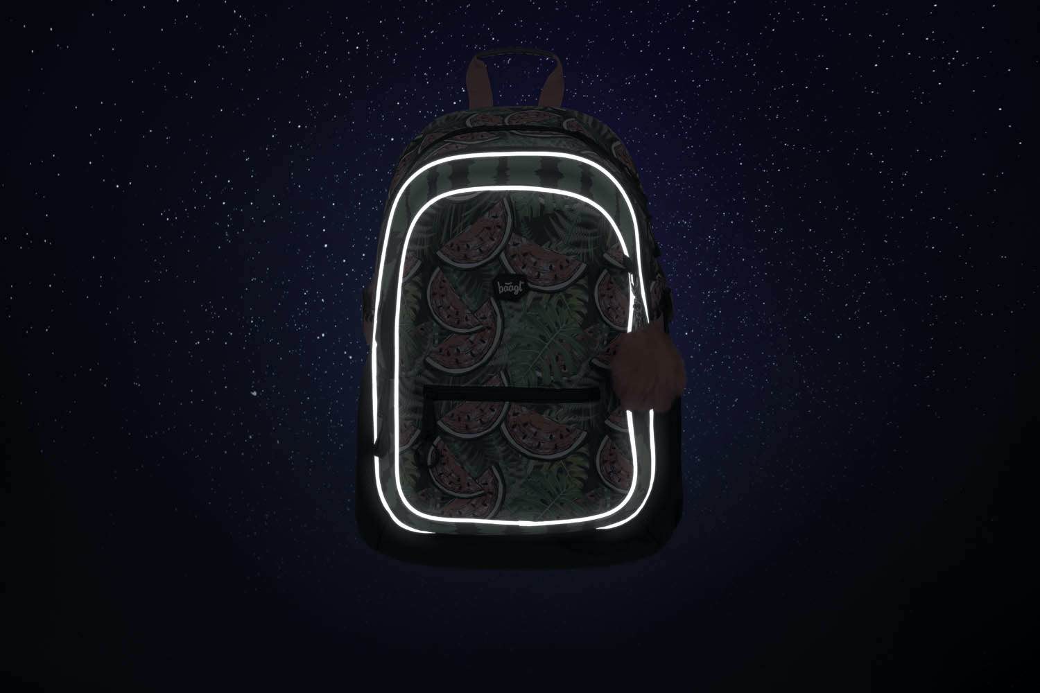 Unübersehbarer Schulrucksack Core Melon mit einer auffälligen grün-roten Farbkombination.