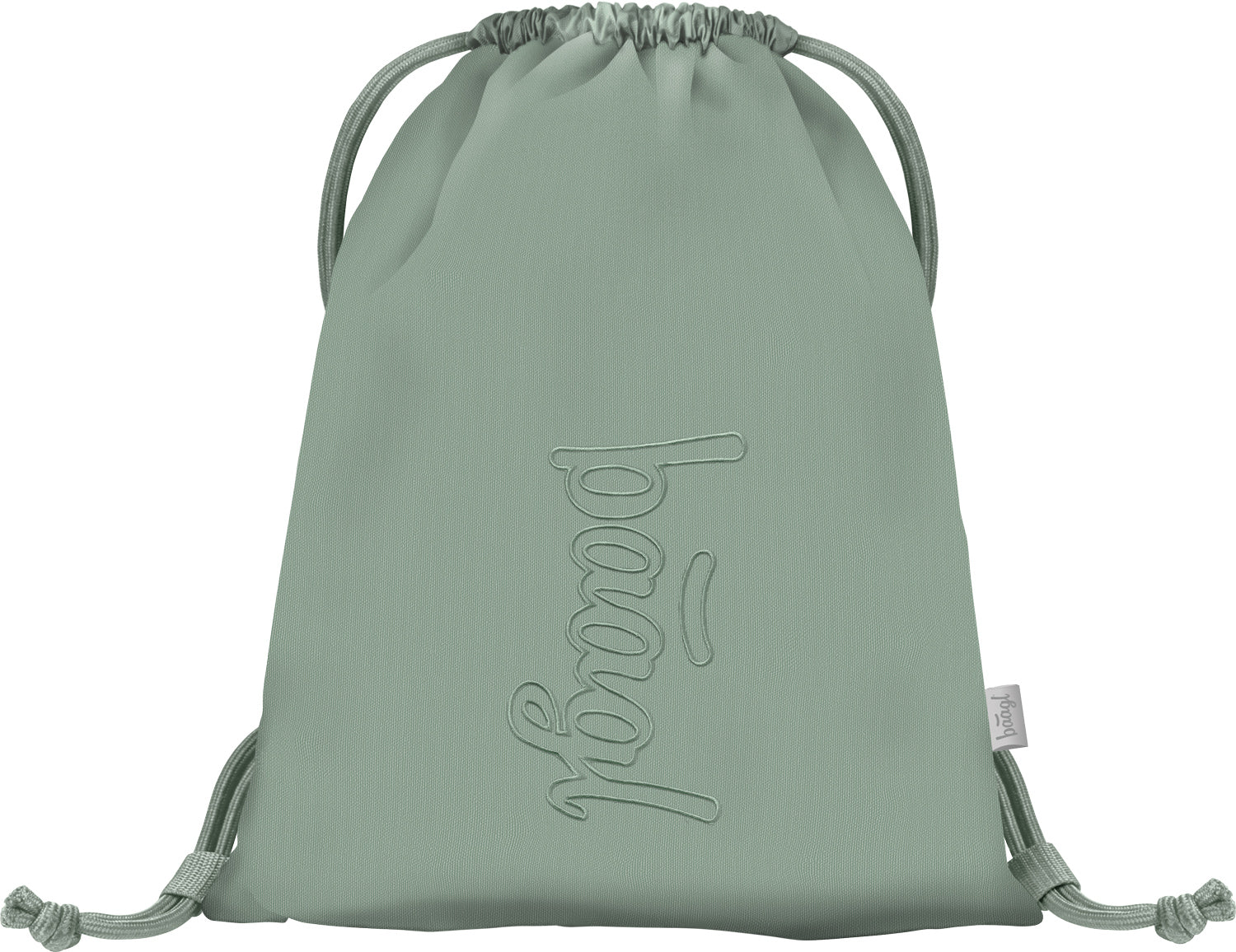 Mentholgrüner Turnbeutel mit BAAGL-Logo und robusten Kordeln für bequemen Transport.