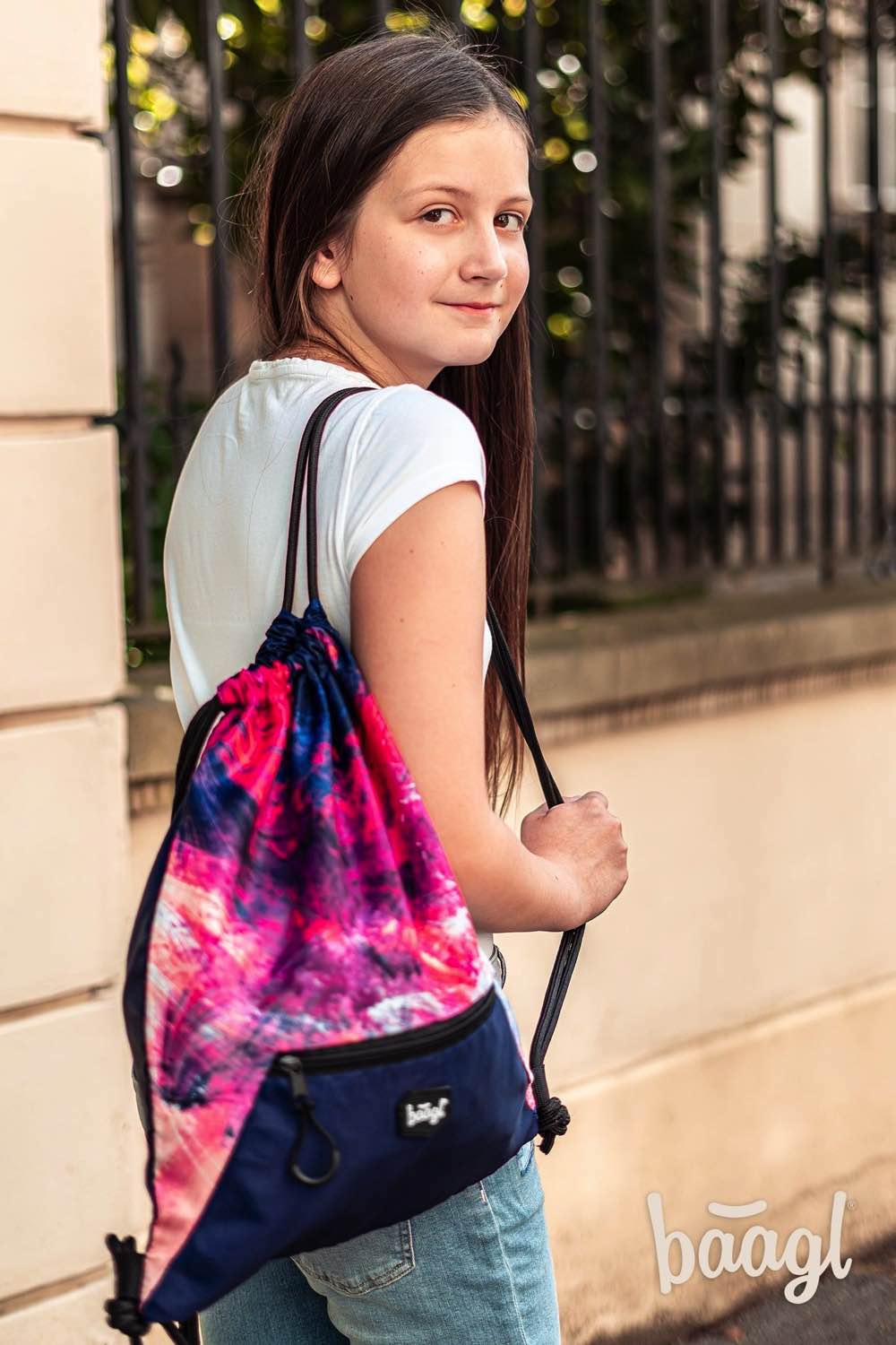 Turnbeutel mit farbenfrohen Design, der alle Schulmädchen anspricht.