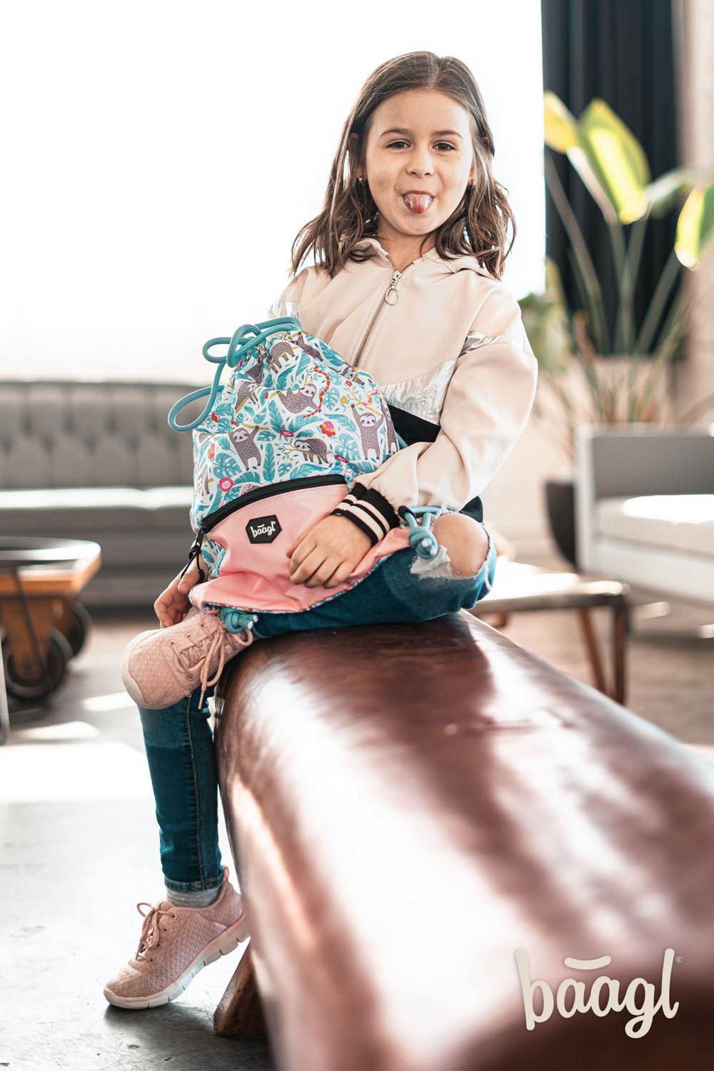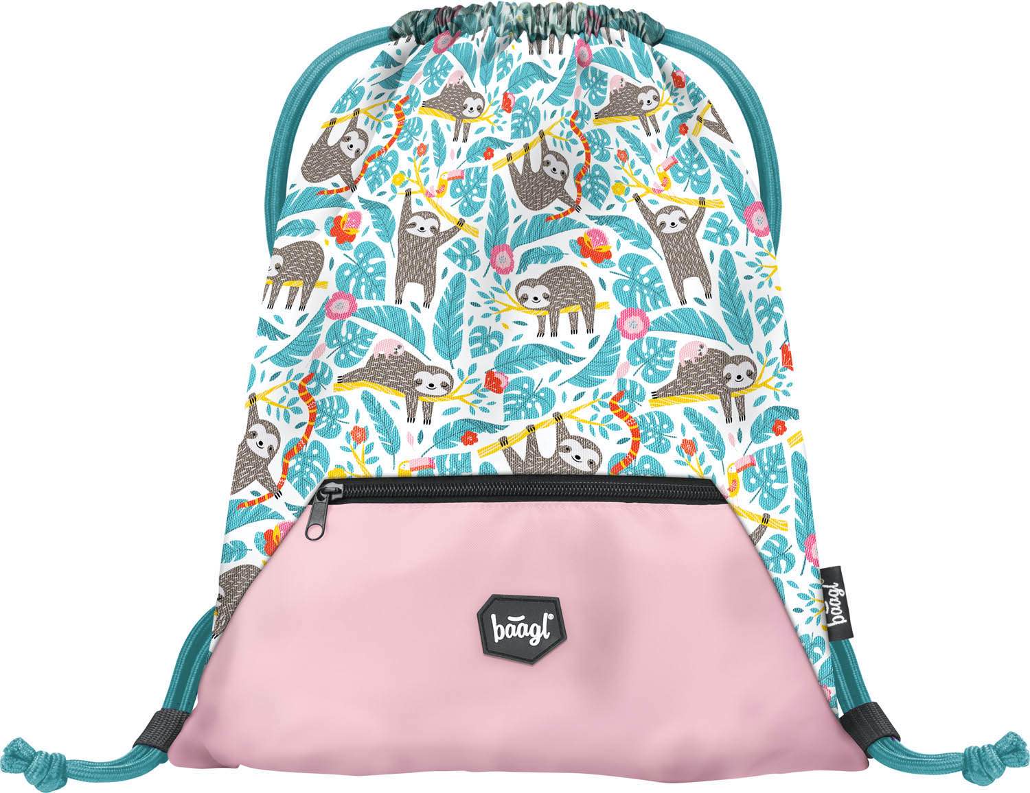 Turnbeutel mit einem Faultiermotiv und einer praktischen Reißverschluss-Tasche an der Unterseite.