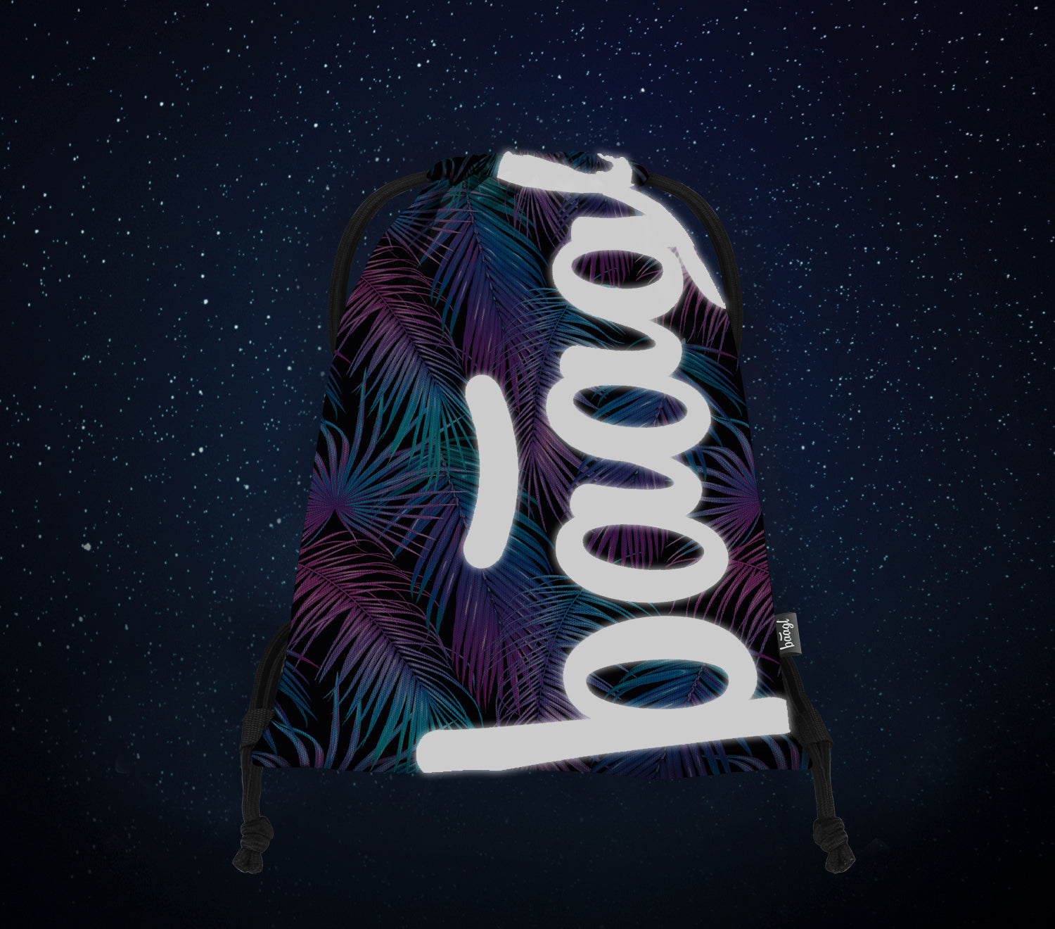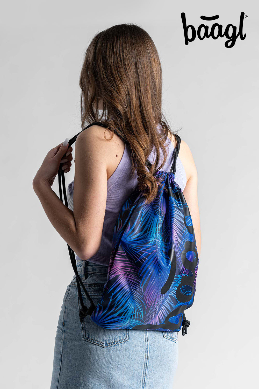Praktischer Beutel für Schuhe oder Turnbeutel mit zartem Blattmotiv und BAAGL-Logo aus recyceltem Material.