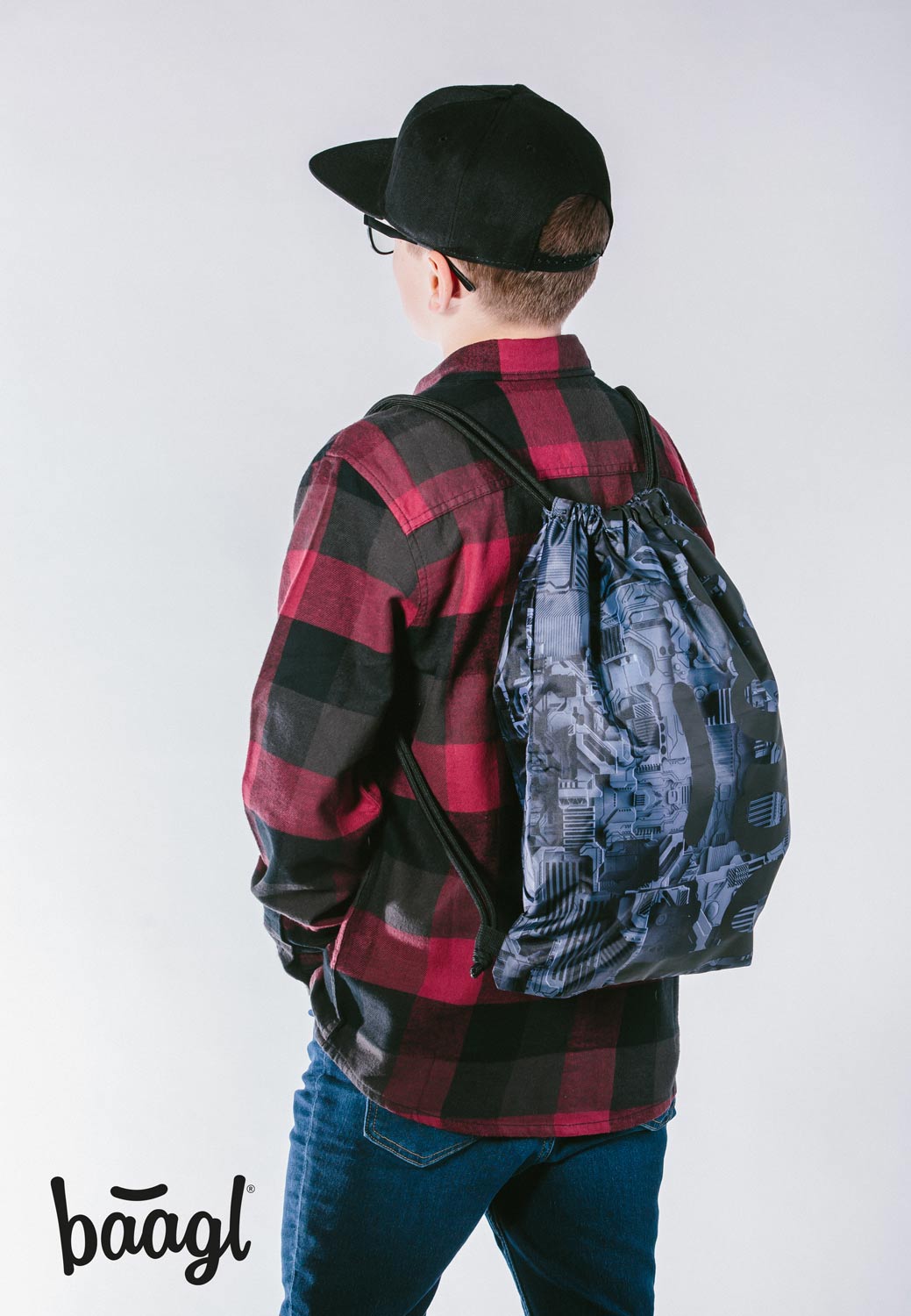 Turnbeutel mit Muster von industriellen Elementen wird jedes Schulkind lieben.