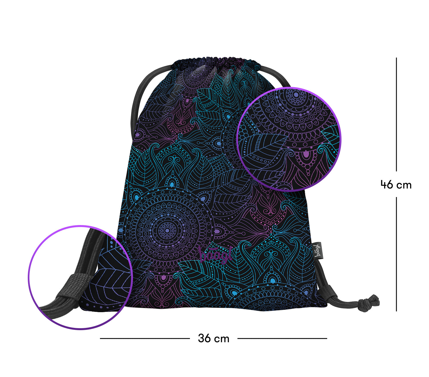 Praktischer Schuh- oder Turnbeutel mit Mandala-Motiv und starken Schnürsenkeln.