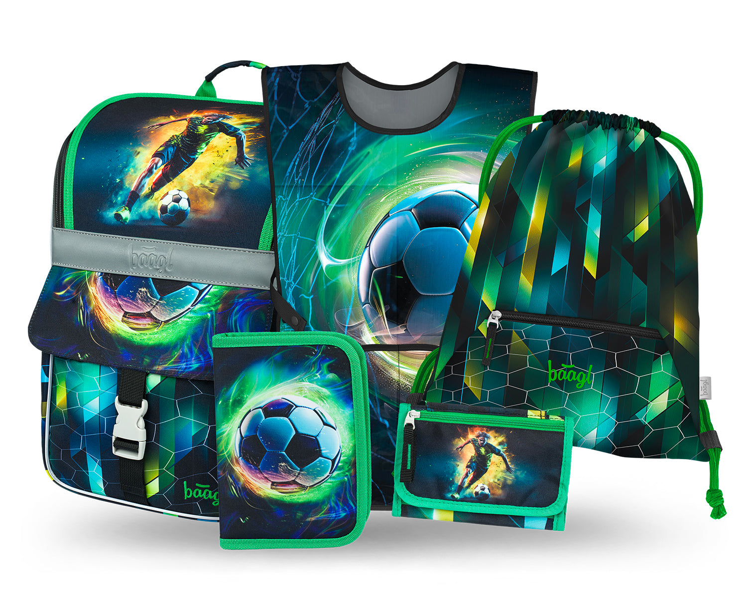 Zippy Fußballspieler Schulranzen-Set 5tlg.: Schulranzen, Federmäppchen, Turnbeutel, Schürze, Brustbeutel